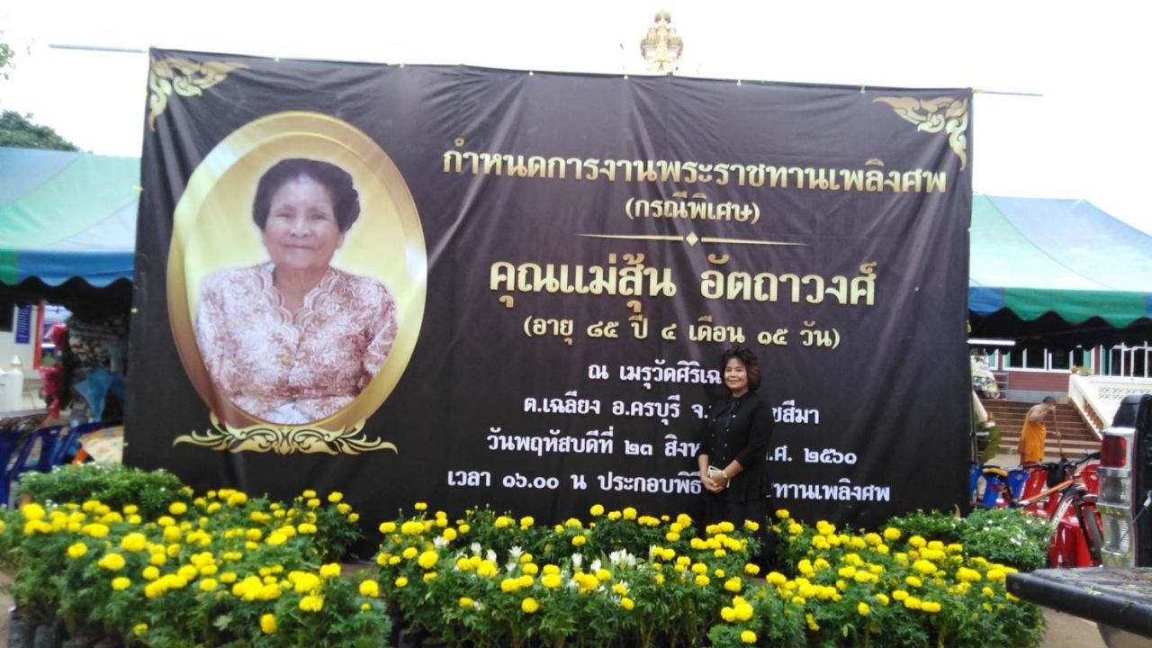 ภายหลังงานเผาศพ นางสุ้น อัตถาวงศ์ มารดาของนายสุภรณ์ อัตถาวงศ์ หรือ แรมโบ้ อีสาน อดีตรองเลขาธิการนายกรัฐมนตรีฝ่ายการเมือง เมื่อวันที่ 23 ส.ค. เวลา 16.00 น. ที่เมรุวัดศิริเฉลียง ต.เฉลียง อ.ครบุรี จ.นครราชสีมา