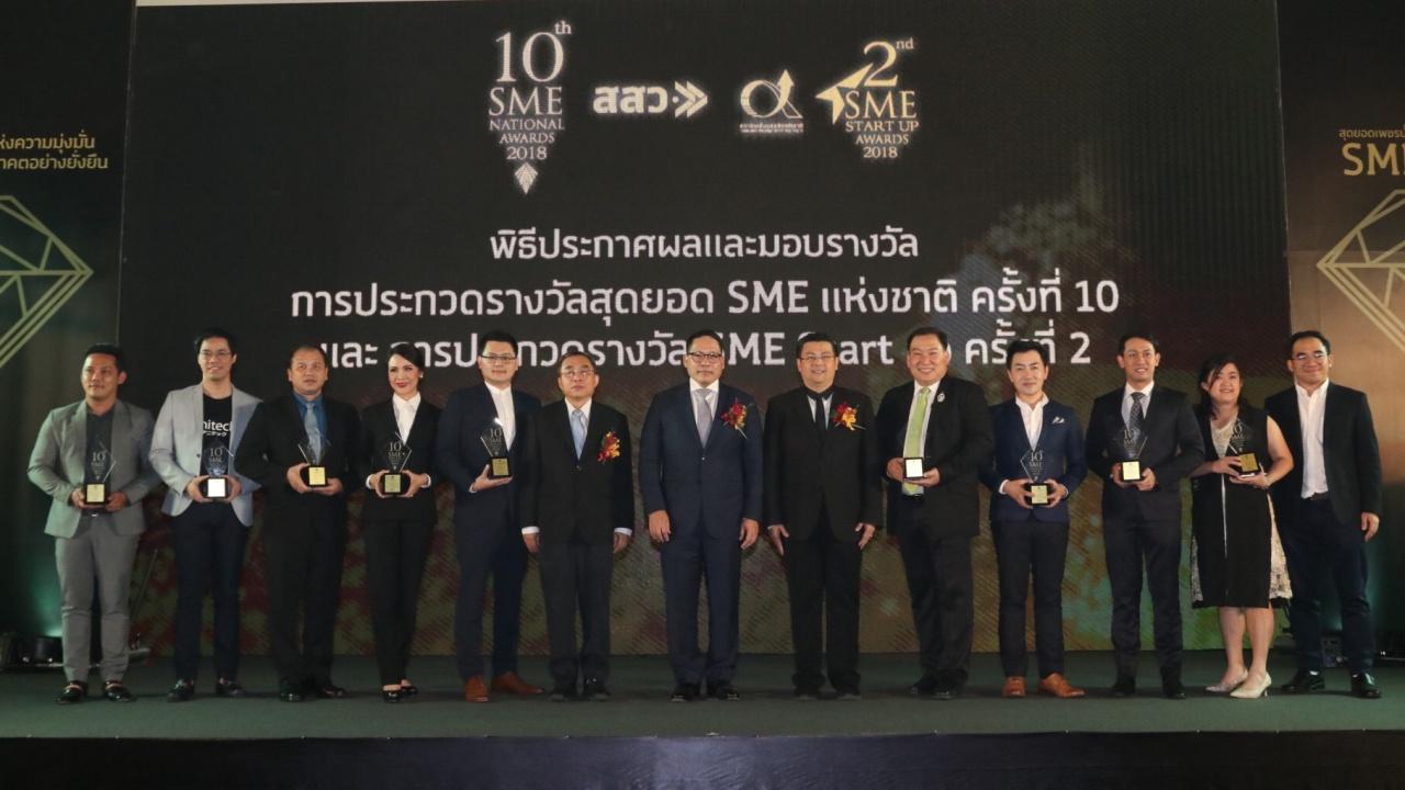 เมื่อวันที่ 10 ก.ย.61 นายอุตตม สาวนายน รัฐมนตรีว่าการกระทรวงอุตสาหกรรม เป็นประธานในพิธีประกาศผลและมอบรางวัลสุดยอด SME แห่งชาติ ครั้งที่ 10 และรางวัล SME Start up ครั้งที่ 2 ซึ่งจัดขึ้น ณ ห้องบอลรูม ศูนย์การประชุมแห่งชาติสิริกิติ์ โดยมี นายสุวรรณชัย โลหะวัฒนกุล ผู้อำนวยการสำนักงานส่งเสริมวิสาหกิจขนาดกลางและขนาดย่อม (สสว.) และ ดร.พานิช เหล่าศิริรัตน์ ผู้อำนวยการสถาบันเพิ่มผลผลิตแห่งชาติ พร้อมด้วยผู้บริหาร และผู้ประกอบการ SME ให้การต้อนรับ ซึ่งผู้ประกอบการที่ได้รางวัลล้วนแต่เป็น SME ระดับแนวหน้าที่มีศักยภาพสูง แบ่งเป็นรางวัลสุดยอด SME แห่งชาติ ครั้งที่ 10 จำนวน 45 กิจการ และรางวัล SME Start up ครั้งที่ 2 จำนวน 104 กิจการ