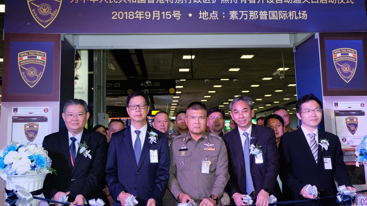 เมื่อเวลา 10.00 น. วันที่ 15 กันยายน 2561 พล.ต.ท.สุทธิพงษ์ วงษ์ปิ่น ผบช.สตม. เป็นประธานในพิธีเปิดใช้งาน เครื่อง Automatic Channel สำหรับผู้ถือหนังสือเดินทางฮ่องกง สาธารณรัฐประชาชนจีน โดยมีนายศิโรตม์ ดวงรัตน์ ผอ.ท่าอากาศยานสุวรรณภูมิ นายโจว กวางซี่ เลขานุการโท สอท.จีน นายประพัทธ์ ดิษยทัต รองอธิบดีกรมเอเชียตะวันออก นายพรเลิศ กาญจนนิยต ประธานคณะกรรมการดำเนินงานธุรกิจการบินกรุงเทพ ตัวแทนจากหน่วยงานภาครัฐ และเอกชนด้านการท่องเที่ยว เข้าร่วมงาน บริเวณอาคารผู้โดยสารขาเข้าโซนตะวันตกชั้น 2 ท่าอากาศยานสุวรรณภูมิ อ.บางพลี จ.สมุทรปราการ