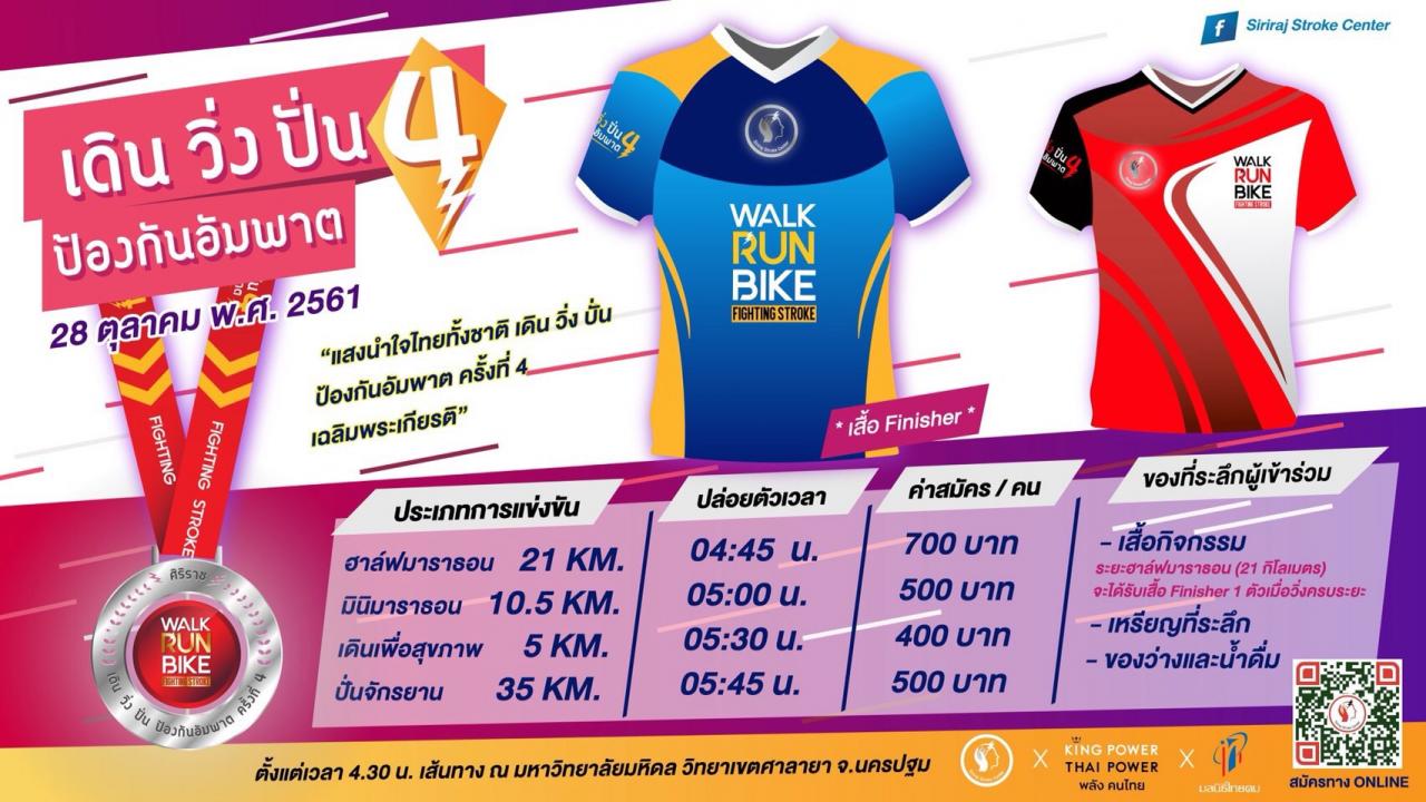 ศิริราช ร่วมกับ กลุ่มบริษัท คิง เพาเวอร์ และโรงพยาบาลเครือข่าย จัดงาน “แสงนำใจ ไทยทั้งชาติ เดิน วิ่ง ปั่น ป้องกันอัมพาต ครั้งที่ 4 ชิงถ้วยพระราชทานสมเด็จพระเจ้าอยู่หัว