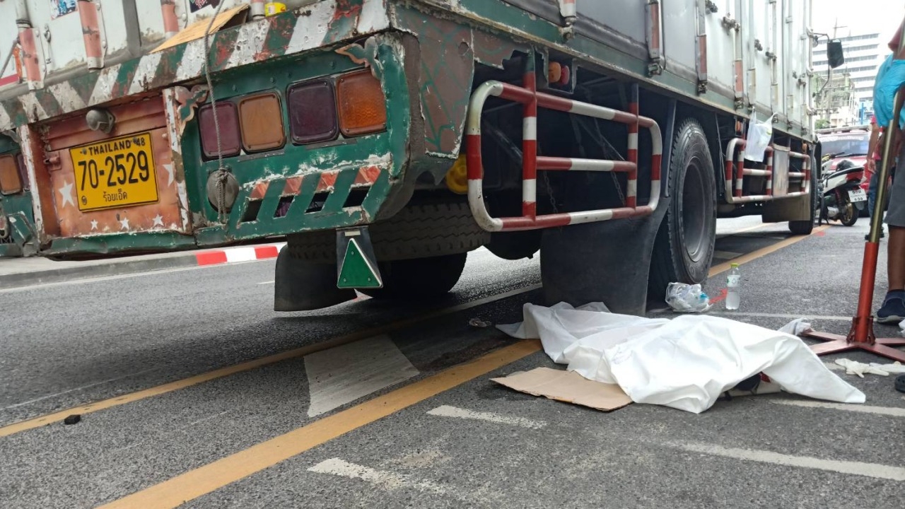 รถหกล้อชน จยย.รับจ้างพาแม่ลูกไปโรงพยาบาล ล้มก่อนล้อทับร่างหนูน้อย 7 ขวบดับคาถนนตรงปากซอยปรีดีพนมยงค์ 45 แม่ร่ำไห้ปิ่มใจจะขาด ด้านคนขับหกล้อ อ้างลงจากสะพานคลองตันแล้วเบรกไม่อยู่...