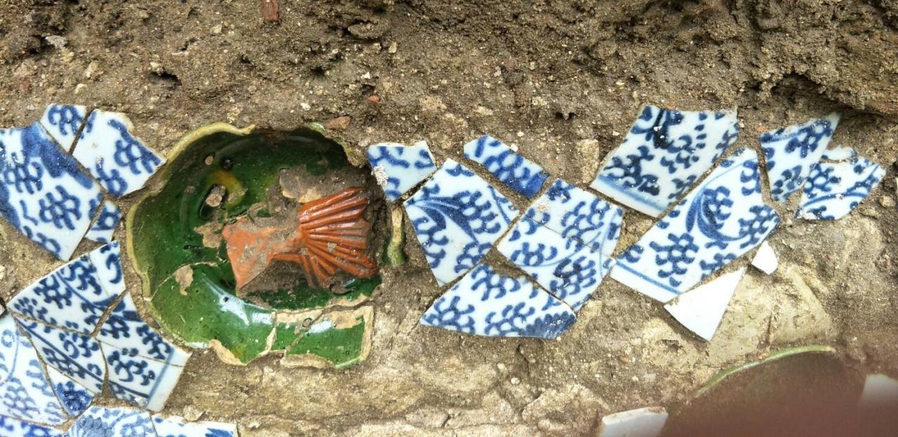 กระทั่งราว 3-4 เดือนที่ผ่านมา ทางกรมศิลปากรว่าจ้างบริษัทเข้ามาบูรณะเจดีย์ยักษ์ซึ่งเป็นจุดเกิดเหตุ โดยก่อนหน้านี้เมื่อช่วง 1 เดือนที่ผ่านมา มีชาวบ้านพบว่าช่างก่อสร้าง ขุดฐานเจดีย์ลงไปพบถ้วยชามสังคโลกสมัยรัชกาลที่ 3 จำนวนหนึ่ง สภาพค่อนข้างสมบูรณ์ แต่น่าเสียดายที่ทีมช่างไม่มีความรู้เรื่องการนำวัตถุเหล่านี้ออกจากกรุ จึงเกิดการแตกเสียหายไปบางส่วน ที่สำคัญชาวบ้านก็สามารถถ่ายภาพเป็นหลักฐานเอาไว้ได้ แต่หลังจากนั้น ทางกรมศิลปากรก็มีคำสั่งให้ล้อมรั้วรอบเจดีย์ไม่ให้ใครเข้าไปยุ่งเกี่ยว กระทั่งเจดีย์เกิดการทรุดตัวมีผู้เสียชีวิตและได้รับบาดเจ็บดังกล่าว