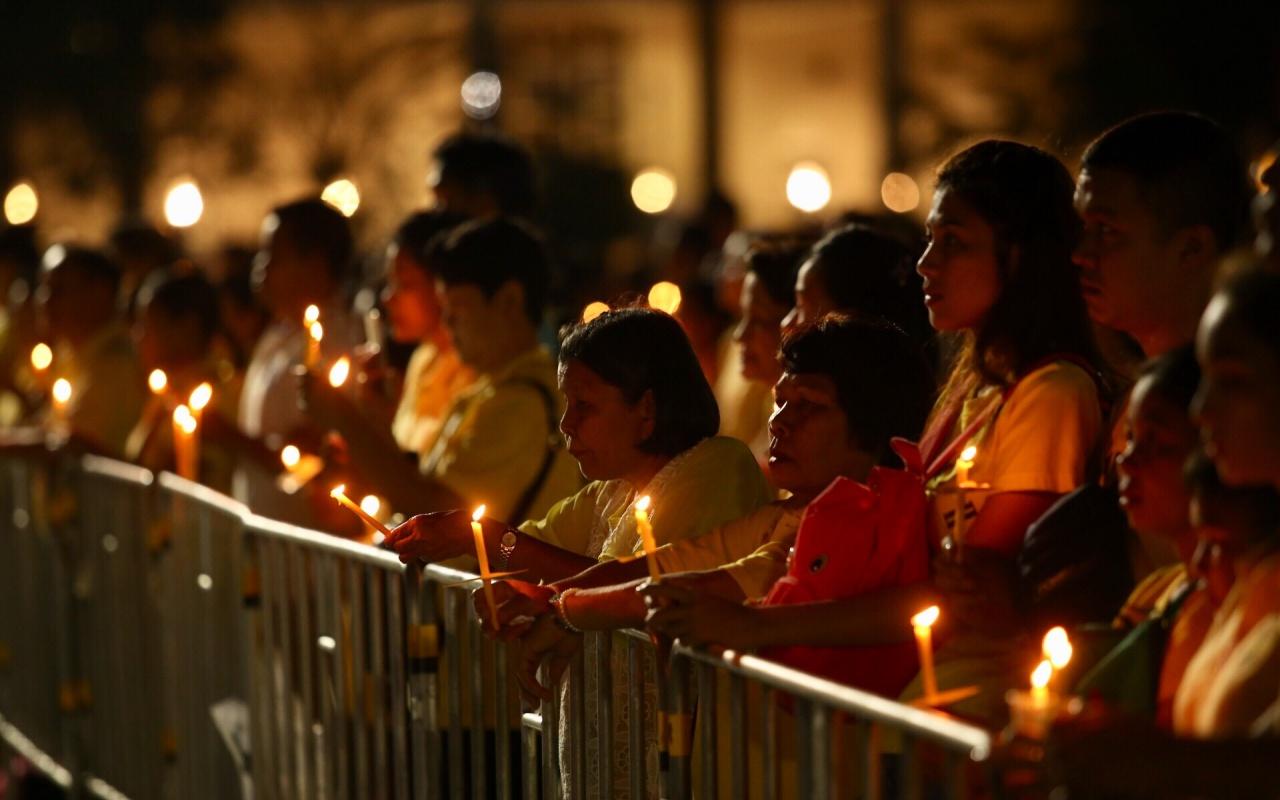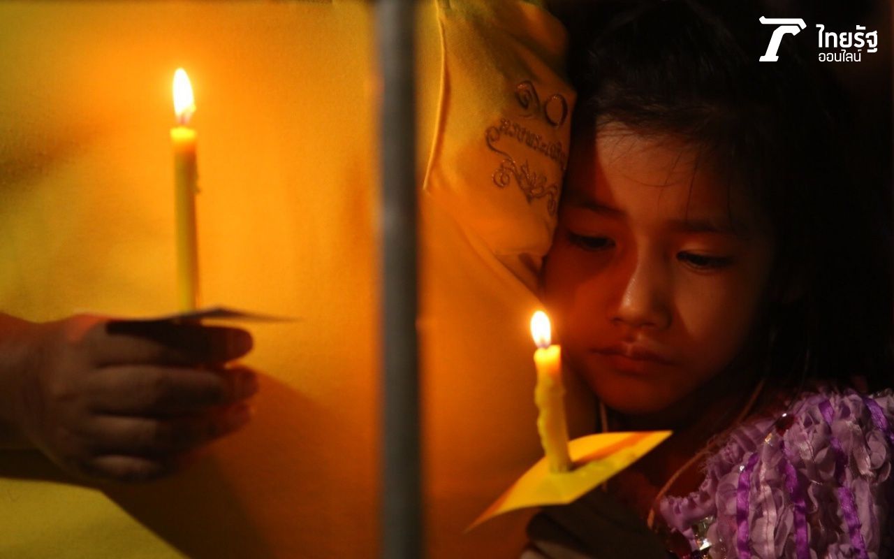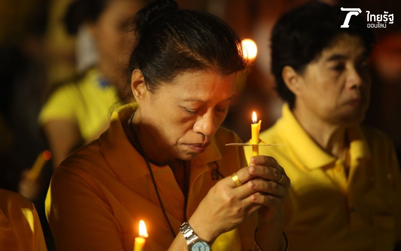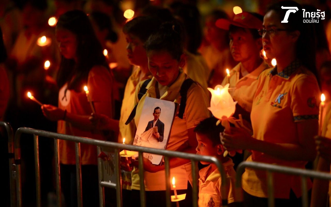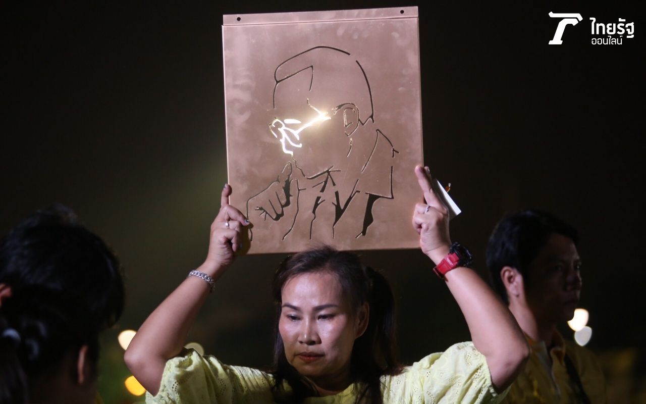 โอกาสนี้ ขอให้ผู้ที่ชุมนุมร่วมกัน ณ สถานที่แห่งนี้และสถานที่ต่างๆ พร้อมใจกันจุดเทียนและยืนสงบนิ่ง เพื่อน้อมรำลึกถึงพระมหากรุณาธิคุณหาที่สุดมิได้ของพระบาทสมเด็จพระปรมินทรมหาภูมิพลอดุลยเดช บรมนาถบพิตร