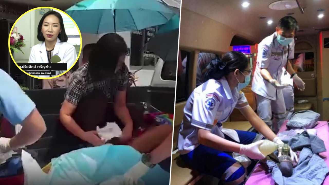 ที่ทีเด็ดและฮือฮามาก คือเด็กคลอดในรถ 2 คัน คันแรกเป็นรถพ่วง 18 ล้อ ยี่ห้อฮีโน่ สีขาว ส่วนหัวหมายเลขทะเบียน 70-1607 เลย ส่วนท้าย 70-1608 เลย จอดอยู่โดยมีนายสุประดิษฐ์ กองสี อายุ 30 ปี เป็นคนขับและ น.ส.รสรินทร์ สอนสุธิ อายุ 29 ปี ซึ่งตั้งครรภ์กว่า 7 เดือน ได้คลอดลูกขณะสามีขับมาถึงจุดพักรถทางพิเศษ ทับช้าง 2