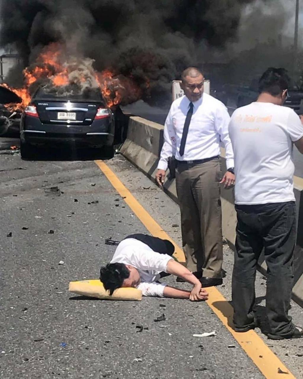 จากกรณีอุบัติเหตุรถกระบะและรถเก๋งชนกัน บนทางคู่ขนานลอยฟ้าบรมราชชนนี จนไฟลุกท่วม และมีผู้บาดเจ็บทั้งหมด 2 รายนั้น