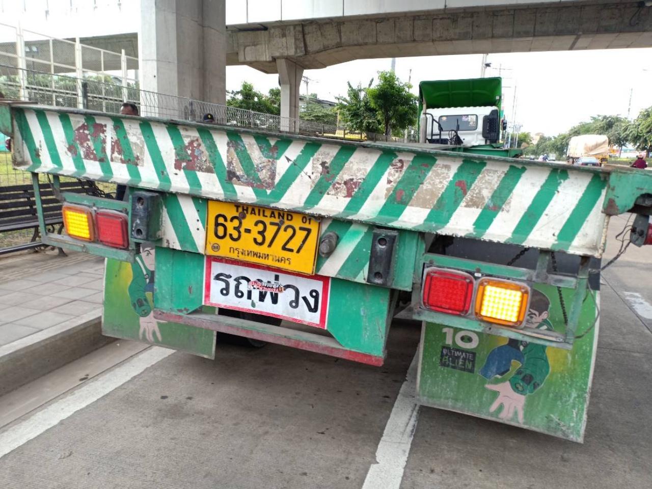 "แต่ระหว่างที่เป็นทางโค้งลงทางลาดนั้น ตนพยายามเบรกห้ามล้อชะลอความเร็ว ทำให้ตู้คอนเทนเนอร์ซึ่งมีน้ำหนักมากเกิดหลุดจากสลักยึดพลิกหล่นลงถนน จึงรีบแจ้งตำรวจและหน่วยงานที่เกี่ยวข้องมาตรวจสอบ ก่อนเร่งประสานรถเครนมายกตู้คอนเทนเนอร์ออกจากพื้นถนนได้ด้วยความปลอดภัย" นายชัยพิชิตร กล่าว.