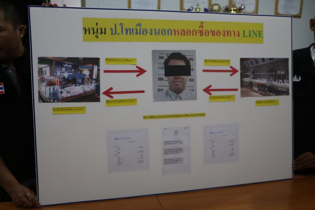 จากการสอบสวน ผู้ต้องหาให้การรับสารภาพว่าได้กระทำความผิดจริง โดยทำมาแล้ว 2 ครั้ง ซึ่งจะใช้อินเทอร์เน็ตเพื่อหาร้านจำหน่ายโทรศัพท์มือถือทั่วไป และใช้แอปพลิเคชันไลน์ในการติดต่อซื้อโทรศัพท์มือถือ และให้ทางร้านค้าผู้เสียหายส่งเลขบัญชีธนาคารมาให้ ก่อนจะทำสลิปปลอมแก้ไขตัวเลขผ่านโปรแกรมคอมพิวเตอร์ รวมถึงข้อความชำระเงินปลอมผ่านโทรศัพท์มือถือร้านค้าผู้เสียหาย เมื่อผู้เสียหายหลงเชื่อ จะให้พนักงานส่งของบริษัทเอกชน (ลาล่ามูฟ) ไปรับสินค้าที่ร้านผู้เสียหาย ก่อนจะนำไปขายต่อกับร้านจำหน่ายโทรศัพท์ที่ห้างเมกะบางนา และเงินที่ได้มาจากการก่อเหตุก็จะนำมาใช้จ่ายในชีวิตประจำวัน