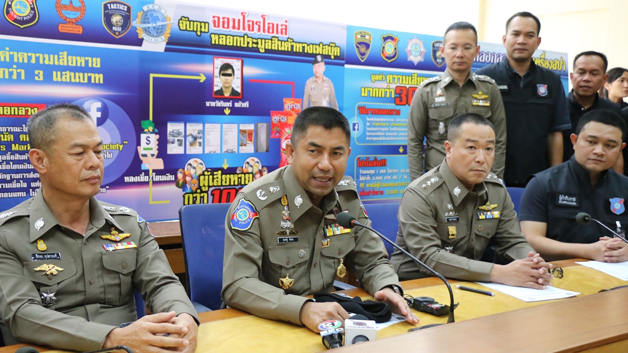 จับผู้ต้องหาใช้เฟซบุ๊กตุ๋นเหยื่อ 3 คดีรวด เปิดเผยขึ้นที่กองบังคับการปราบปรามการกระทำความผิดเกี่ยวกับอาชญากรรมทางเศรษฐกิจ (บก.ปอศ.) เมื่อเวลา 11.00 น. วันที่ 6 พ.ย. พล.ต.ต.สุรเชษฐ์ หักพาล รรท.ผบช.สตม. พล.ต.ต.ธีรพล คุปตานนท์ รรท.ผบช.ทท. พ.ต.อ.วรพจน์ ดิษยบุตร รอง ผบก.ปอศ. และชุด ศปอส.ตร. แถลงจับกุมมิจฉาชีพหลอกร่วมลงทุน 3 คดี คดีแรกจับกุมนายพิพัฒน์ชัย จงจิตไพศาล อายุ 50 ปี นางภัสราภรณ์ โชติสิงห์สิริ อายุ 46 ปี สามีภรรยา ข้อหาร่วมฉ้อโกงประชาชน และนำเข้าข้อมูลสู่ระบบคอมพิวเตอร์อันเป็นเท็จ หลังหลอกลวงให้ร่วมลงทุนขายเครื่องนวดสปาหน้า มีผู้เสียหายแจ้งความ 10 คน รวมมูลค่าสูญกว่า 5 ล้านบาท คาดว่ามีผู้เสียหายที่ยังไม่ได้มาแจ้งความกว่า 100 ราย รวมมูลค่าความเสียหายกว่า 30 ล้านบาท