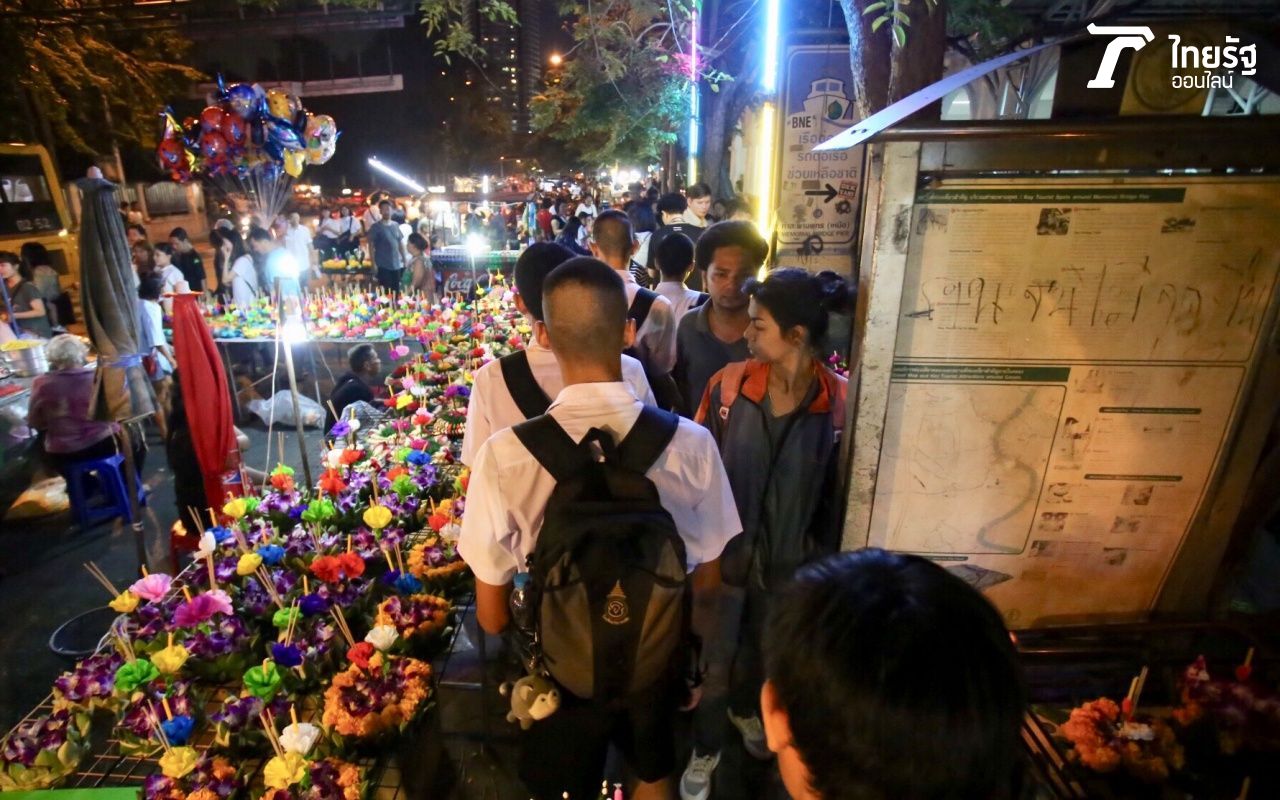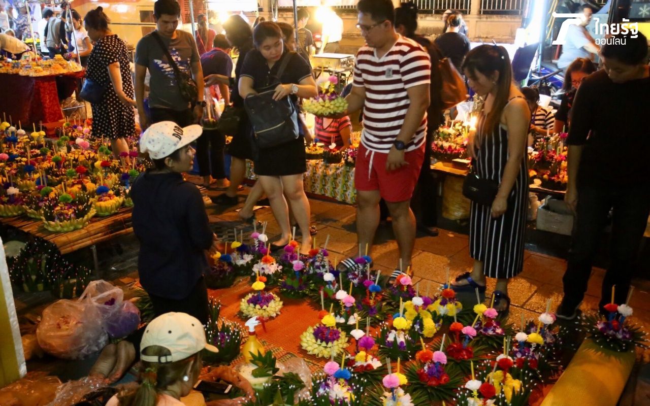 สำหรับกระทงที่ผู้คนส่วนใหญ่เลือกใช้จะทำจากวัสดุจากธรรมชาติ หรือขนมปัง ซึ่งพ่อค้าแม่ค้าต่างนำกระทงมาขายรอบบริเวณท่าเรือสะพานพุทธ ในราคาตั้งแต่ 50-100 บาท ได้รับความนิยมแก่ผู้ที่เดินทางมาเป็นจำนวนมาก
