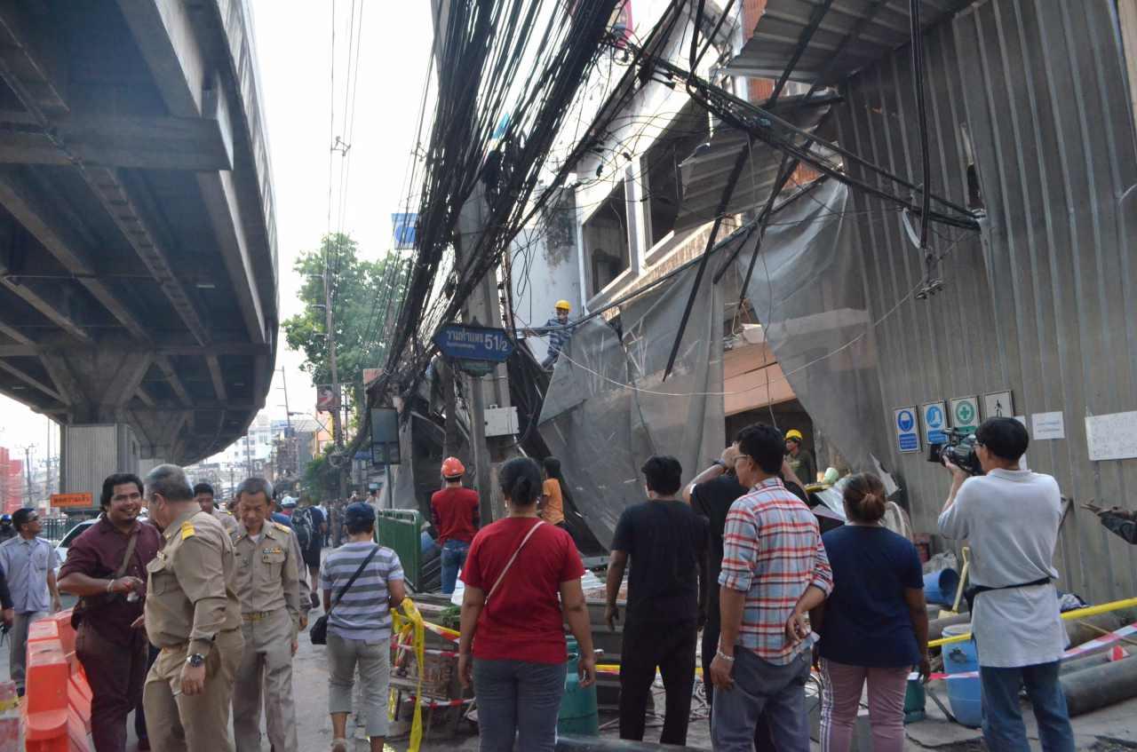 "ก่อนเกิดเหตุ เจ้าหน้าที่ได้นำรถแบ็กโฮขนาดใหญ่มารื้อถอนส่วนที่เหลือ เริ่มดำเนินการเมื่อวานนี้เป็นวันแรก ส่วนวันนี้การรื้อถอนทุบตึกใช้คนงาน 9 คน ขณะทำการรื้อถอนจากด้านใน ตัวระเบียงแผ่นปูนของชั้น 2 รับแรงกระแทกไม่ไหว หลุดมากระแทกกันสาดถล่มลงมา โดยระหว่างรื้อถอนนั้น ทางเดินฟุตปาทหน้าอาคารไม่อนุญาตให้มีคนเดินผ่านเด็ดขาด ต้องไปเดินตรงถนน ผู้บาดเจ็บอยู่ระหว่างเดินผ่าน จึงถูกเศษซากตกใส่ ส่วนคนงานไม่มีใครได้รับบาดเจ็บหรือเสียชีวิต
