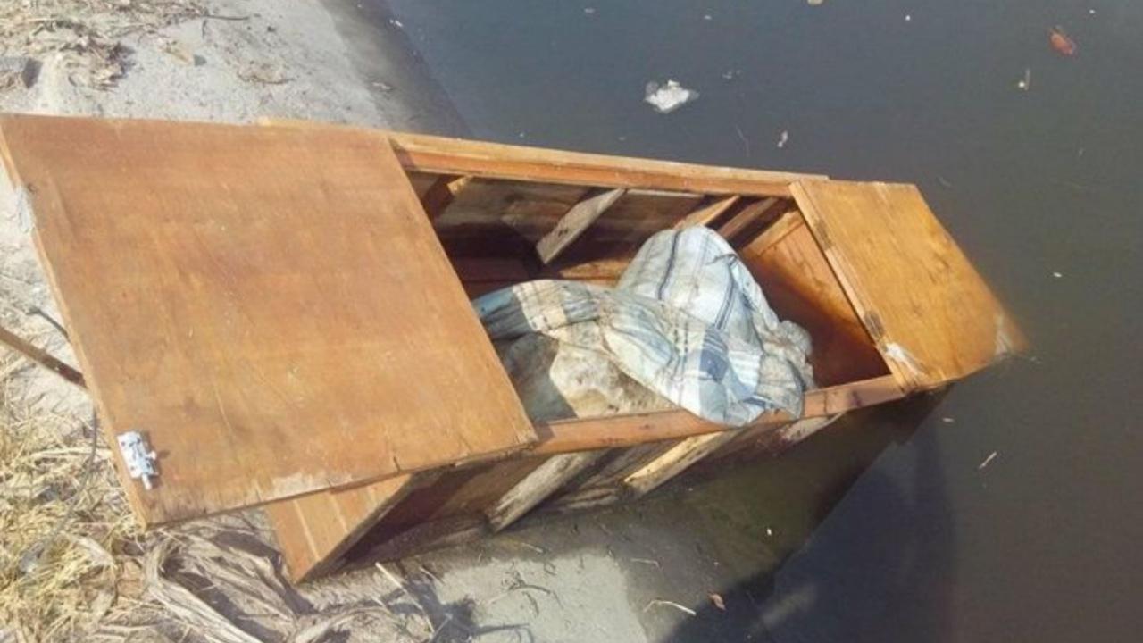 ผู้เสียชีวิตเป็นหญิง อายุประมาณ 40-50 ปี ตายมาแล้วประมาณ 15 วัน สภาพศพเน่าเปื่อย นุ่งกางเกงขาสั้นสีดำ มีรูปการ์ตูนคิตตี้ บริเวณท่อนบนเปลือยเปล่า มีเส้นผมสีขาวปนทองหลงติดที่ศีรษะ โดยมีผ้าปูที่นอนปิดคลุม และมีก้อนหินหนักประมาณ 50 กิโลกรัม วางทับไว้ อยู่ในตู้ไม้ยาวประมาณ 150 เซนติเมตร กว้าง 60 เซนติเมตร และเริ่มมีหนอนไต่ตามตัว รวมทั้งแมลงวันตอมเป็นจำนวนมาก เบื้องต้นยังไม่ทราบว่าผู้ตายเป็นใคร และยังไม่สามารถพิสูจน์ได้ว่าเสียชีวิตด้วยสาเหตุใด จึงได้นำศพส่งสถาบันนิติเวชผ่าพิสูจน์ตรวจสอบหาสาเหตุการตายอีกครั้งหนึ่ง
