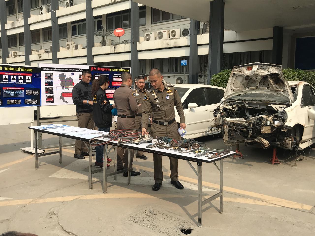 เมื่อเวลา 14.00 น. วันที่ 15 ม.ค. ที่กองบังคับการปราบปราม พล.ต.ต.จิรภพ ภูริเดช ผบก.ป. พ.ต.อ.สันติ ชัยนิรามัย รองผบก.ป.พร้อมด้วย พ.ต.อ.บุญลือ ผดุงถิ่น ผกก.3 บก.ป. พ.ต.ท.รัชภูมิ กุสุมาลย์ รองผกก.1 บก.ป. พ.ต.ท.วิวัฒน์ จิตโสภากุล รองผกก.3 บก.ป. และเจ้าหน้าที่ ศปจร.ก.ร่วมกันแถลงผลตรวจยึดขบวนการสวมซากรถยนต์ พร้อมของกลาง รถยนต์ต้องสงสัย 30 คัน ประกอบด้วยรถกระบะ โตโยต้า อีซูซุ รุ่นต่าง ๆ 24 คัน รถเก๋งโตโยต้า โคโรลล่า 5 คัน และรถฮอนด้า ซีวิค 1 คัน ซากรถเก๋ง ฮอนด้า แจ๊ส 2 คัน และมาสด้า 2 คัน เครื่องยนต์ 18 เครื่อง ชิ้นส่วนอะไหล่รถยนต์ 291 ชิ้น ที่ตรวจยึดที่จังหวัดกาฬสินธุ์ นครปฐม ระยอง ปทุมธานี สมุทรปราการ และอุบลราชธานี