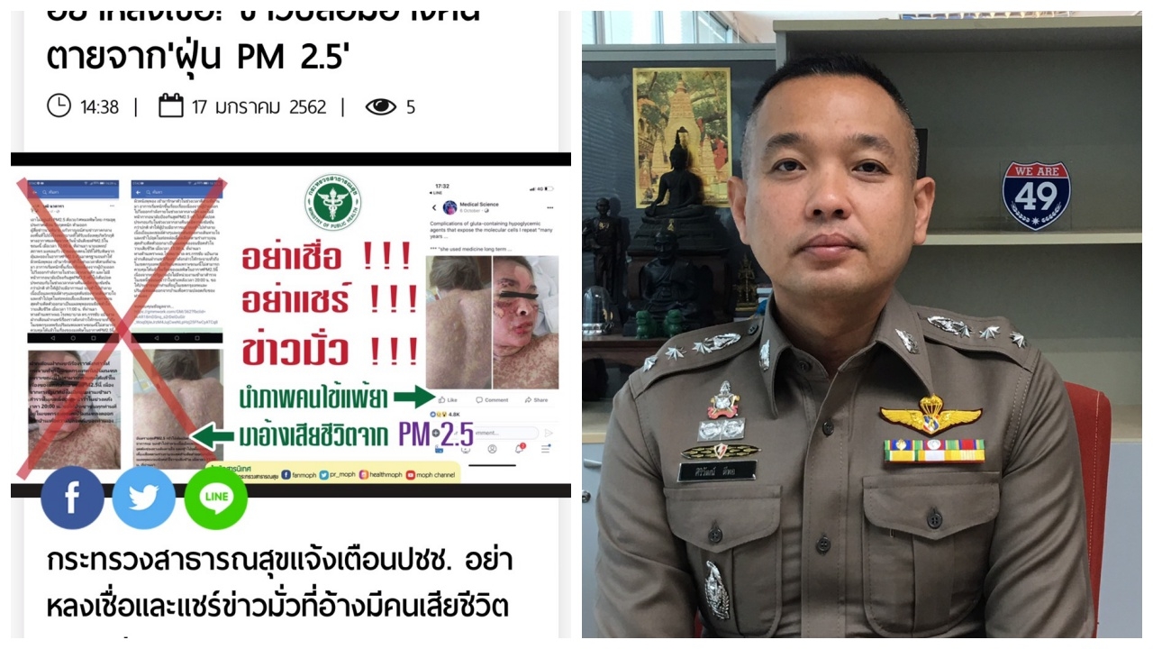 จากกรณีที่โลกโซเชียลได้มีการแชร์ข่าวเกี่ยวกับฝุ่นละออง PM 2.5 เกินมาตรฐาน มีผลกระทบต่อสุขภาพ ทำให้ประชาชนหลีกเลี่ยงการทำกิจกรรมในที่โล่งแจ้งและหันมาสวมหน้ากาก N95 ที่สามารถป้องกันฝุ่นละลองระดับ PM 2.5 ได้ ซึ่งต่อมาเว็บไซต์ข่าวปลอม มีการนำเสนอข่าวที่มีข้อมูลเป็นเท็จ ซึ่งอ้างว่ามีประชาชนได้รับฝุ่น PM2.5 จนเกิดอาการผิวหนังพุพองและช็อกเสียชีวิต สร้างความกลัวให้ประชาชนที่รับข่าวสารจนกระทรวงสาธารณสุขต้องออกมาเตือนว่าเป็นข่าวมั่ว เป็นการนำภาพผู้ป่วยที่แพ้ยาจากสาเหตุอื่นมาสร้างข่าวให้เกิดความตื่นตระหนกนั้น