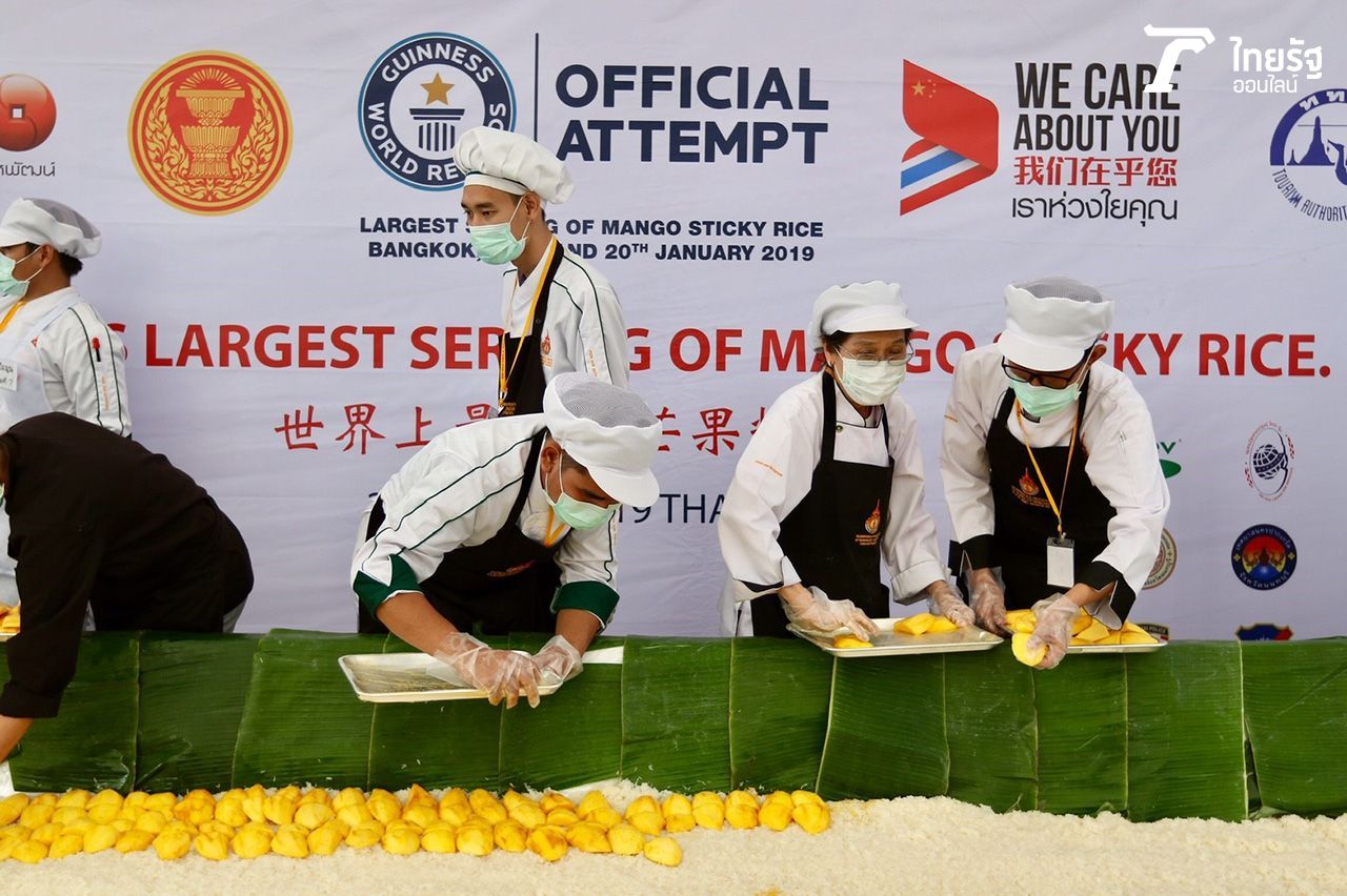 ด้าน น.ส.ฐาปนีย์ เกียรติไพบูลย์ ผู้อำนวยการฝ่ายส่งเสริมสินค้าการท่องเที่ยว การท่องเที่ยวแห่งประเทศไทย (ททท.) กล่าวว่า ททท. ได้เลือกเมนูอาหาร คือข้าวเหนียวมะม่วงเข้าร่วมในครั้งนี้ เพราะเป็นของหวานของไทยที่ไดรับความนิยมไปทั่วโลก และต้องการสร้างสถิติระดับโลกในการจัดทำข้าวเหนียวมะม่วงจำนวนมากที่สุดในโลก (Guinness World Records) หลังจากปีที่แล้ว ททท. เคยสนับสนุนการสร้างสถิติระดับโลกในการจัดบุฟเฟ่ต์ที่ใหญ่ที่สุดในโลก ที่เกาะสมุย จ.สุราษฎร์ธานี ด้วยเมนูอาหารไทยที่หลากหลาย จำนวน 5,829 ชนิด ความยาวกว่า 2.5 กิโลเมตร ณ ริมทะเลชายหาดเฉวง อำเภอเกาะสมุยมาแล้ว.