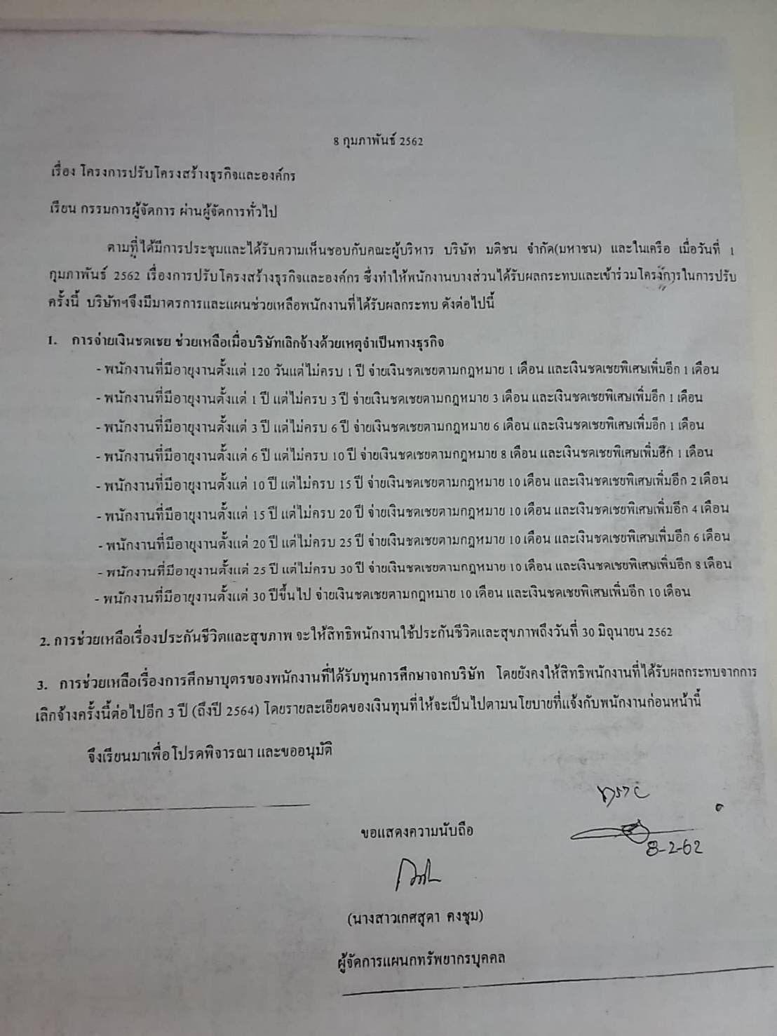 นอกจากนี้ หนังสือพิมพ์ในเครือมติชน ข่าวสด ยังมีมติจากกรรมการบริหารบอร์ด ให้พนักงาน เออร์ลี่ รีไทร์ ในโครงการจ้างออกก่อนเกษียณ โดยให้ค่าจ้างตามระยะเวลาที่กฎหมายกำหนด ตามที่แนบมาตามหนังสือ