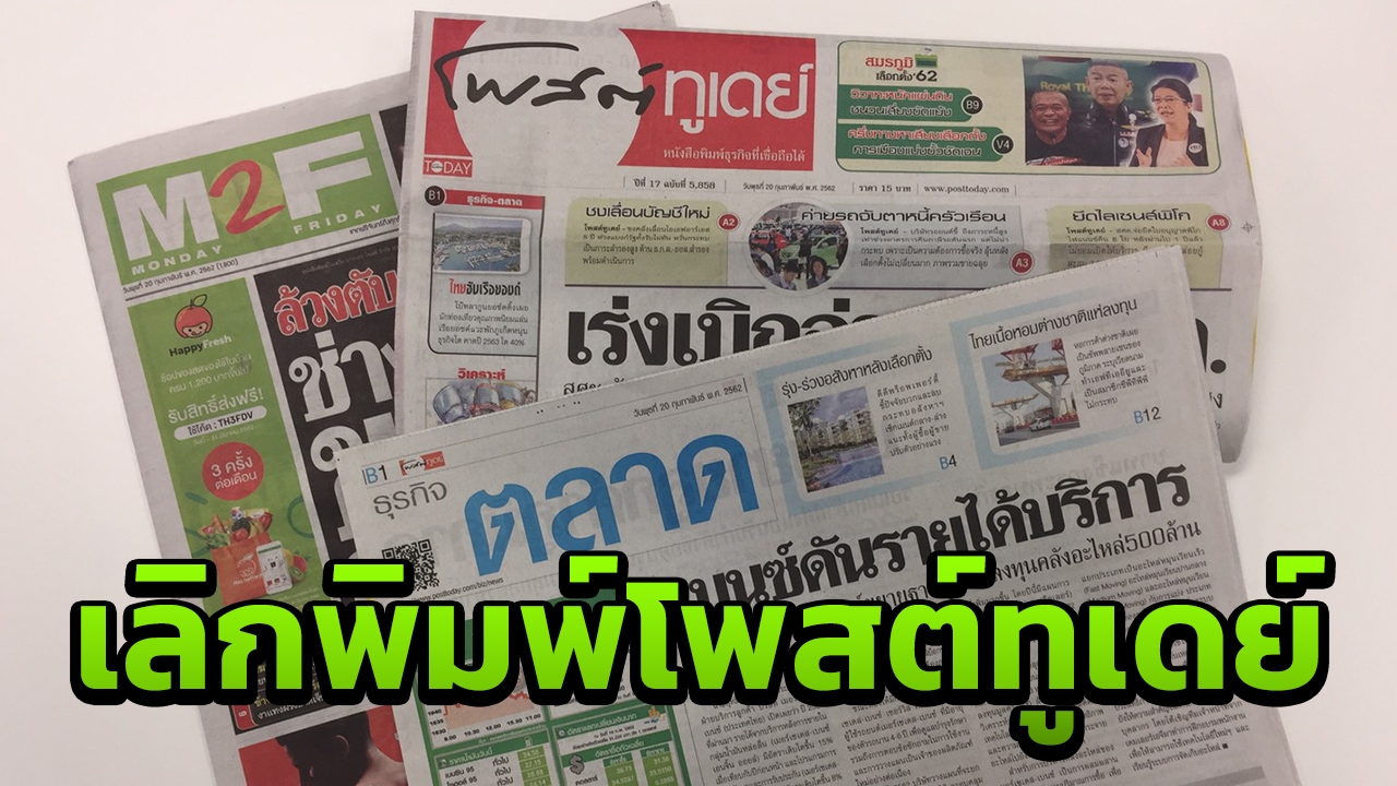 กลุ่มบางกอกโพสต์ ออกแถลงการณ์ ยุติการพิมพ์ หนังสือพิมพ์โพสต์ทูเดย์ภาคภาษาไทย และหนังสือพิมพ์ แจกฟรี M2F ภายใน มี.ค.นี้ ปรับเปลี่ยน มุ่งสู่สื่อดิจิทัลอย่างเต็มตัว ขณะมติบอร์ดเครือมติชน ข่าวสด ให้พนักงาน เออร์ลี่ รีไทร์ ด้วย