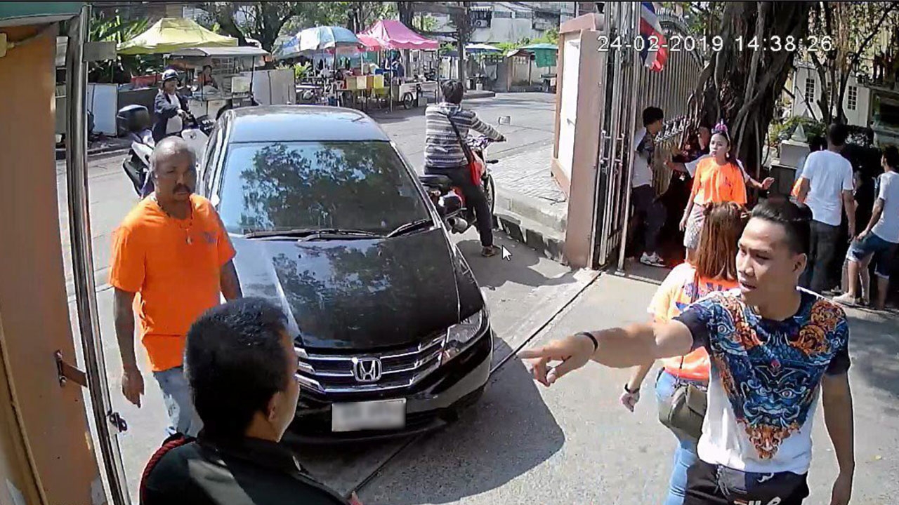 ภาพกล้องวงจรปิดบริเวณหน้า ร.ร.มัธยมวัดสิงห์ บันทึกเหตุการณ์ขณะที่กลุ่มอันธพาลบุกเข้าไปทำร้ายครูและนักเรียนบาดเจ็บ โดยมีนายวัลลภ หรือเอกไฝ นุชแฟง อายุ 32 ปี คนชี้หน้า รปภ.ตำรวจจับกุมได้แล้วเป็นหัวโจก.