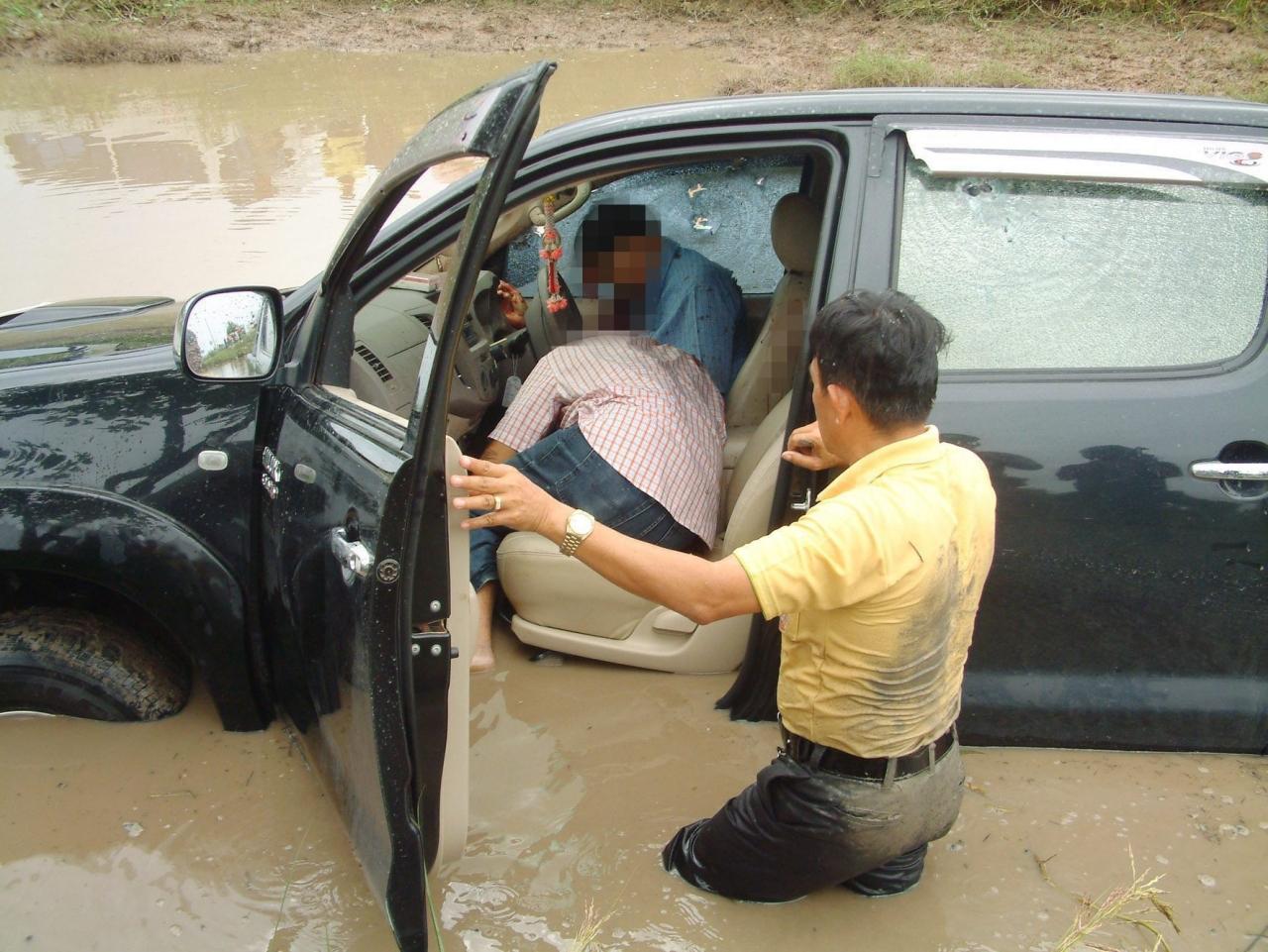 กำนันแม้นและลูกน้องคนสนิท เดินทางไปทำธุระนอกบ้าน เสร็จแล้วพากันเดินทางกลับบ้านที่ ต.บ้านนา อ.วชิรบารมี แต่ระหว่างทางมีกลุ่มคนร้ายไม่ทราบจำนวน ขับรถปิกอัพโตโยต้า สีขาว ไม่ทราบทะเบียน เร่งเครื่องตามประกบทางด้านขวา แล้วมือปืนที่นอนราบอยู่ในกระบะท้าย ลุกขึ้นนั่งพร้อมเล็งปืนเอ็ม 16 ขึ้นมากราดยิงถล่มเสียงดังหูดับตับไหม้ จนรถปิกอัพเหยื่อกระสุนเสียหลักพุ่งตกลงไปในคูน้ำข้างทาง