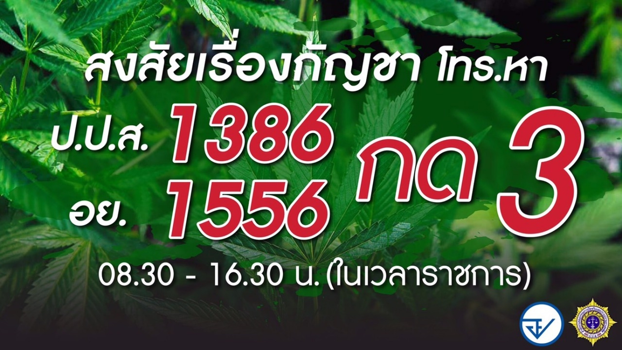 ป.ป.ส. เปิดสายด่วน 1386 ให้ประชาชนสอบถามเรื่อง “กัญชา” โทรมาได้ในวันและเวลาราชการ ย้ำยังคงเป็นยาเสพติดประเภท 5 การปลูกต้องขออนุญาตทำร่วมกับรัฐ ปชช.ทั่วไปจะปลูกเองไม่ได้...