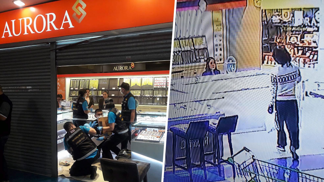 ห้างเพชรทองออโรร่าที่เกิดเหตุอยู่ชั้น 1 ตรงข้ามศูนย์อาหาร พบเจ้าหน้าที่กำลังสอบปากคำพนักงานหญิง 3 คน อยู่ในอาการตื่นตระหนกตรงเคาน์เตอร์ขายทอง ระหว่างนั้น รปภ.ห้างดังกล่าวนำเชือกมากั้นหน้าห้างทองดังกล่าว กันผู้ที่ไม่มีส่วนเกี่ยวข้องเข้าไปวุ่นวายที่เกิดเหตุ และทำลายหลักฐาน ขณะที่ตำรวจกองพิสูจน์หลักฐานกำลังเก็บรอยนิ้วมือแฝง และฝ่ายสืบสวน บช.น.และ สน.ทองหล่อตรวจสอบกล้องวงจรปิด เพื่อหาร่องรอยและรูปพรรณสัณฐานคนร้าย