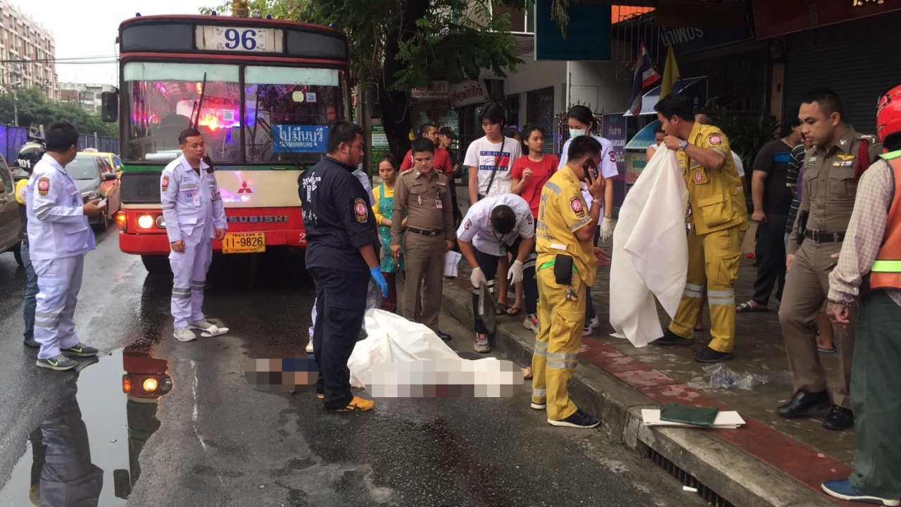หนุ่มวัย 17 ปีชะตาขาด ขี่ จยย.เจอถนนลื่นชนเก๋งเลนกลางที่ชะลอติดไฟแดงแยกซอยลาดพร้าว 101 ฝั่งขาออก จนล้มไถลไปทางเลนซ้าย โดนรถเมล์ครีม-แดง ขสมก.สาย 96 ขับตามหลังมาเบรกไม่ทันทับร่างตายคาที่...
