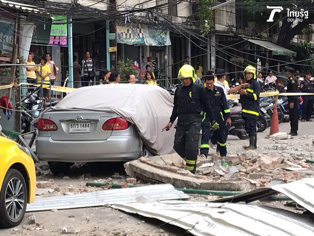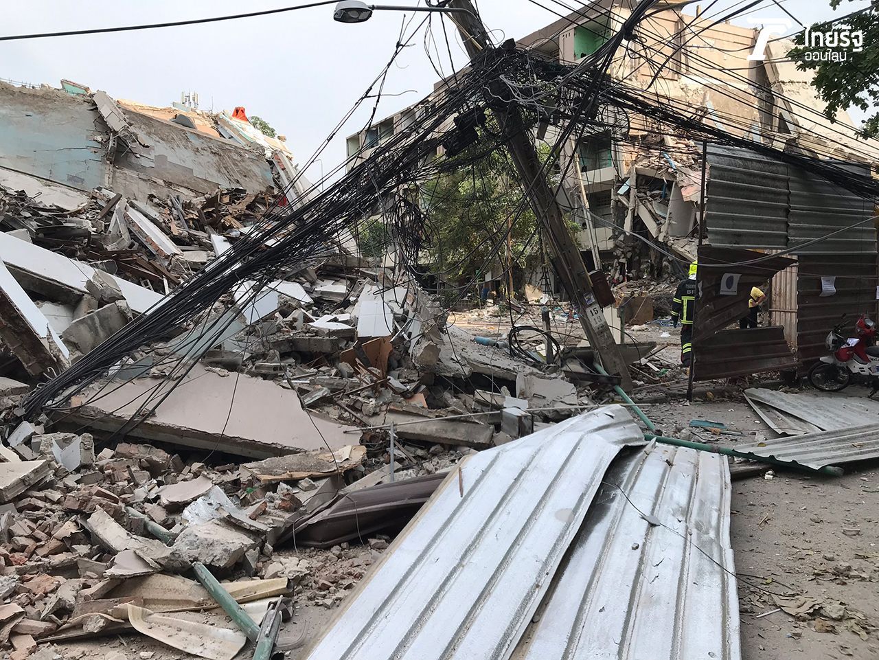 เกิดเหตุ อาคารอยู่ระหว่างการรื้อถอน พื้นที่แฟลตดินแดง 18-20 พังครืน ดึงเสาไฟล้ม ทับรถเสียหายหลายคัน ...
