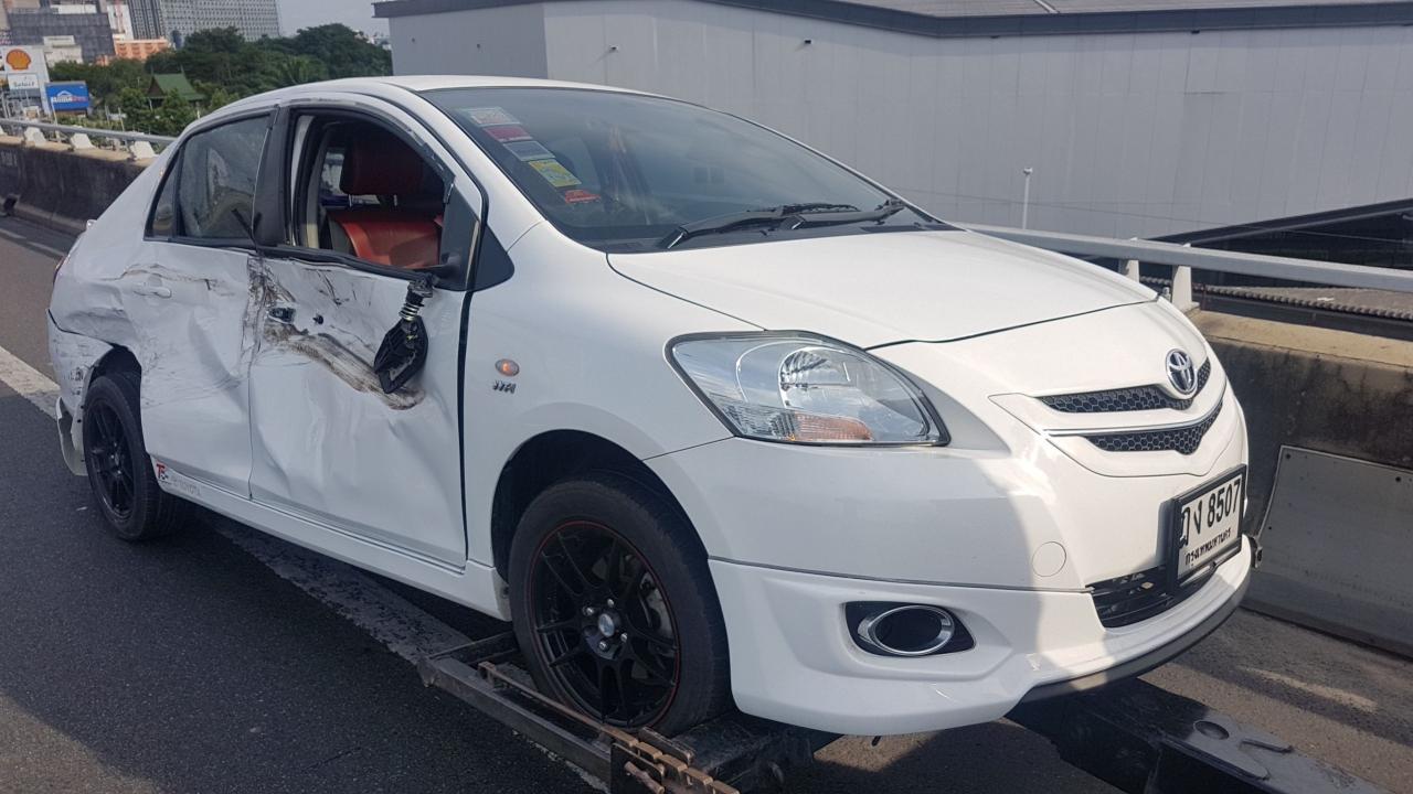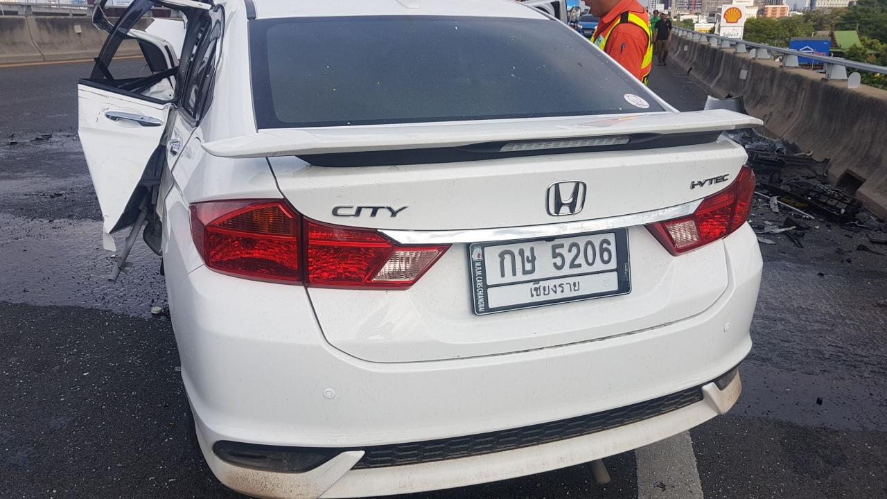 (อ่านข่าว : เก๋งทะเบียนเชียงราย ขับย้อนศร ชนยับบนทางด่วนศรีรัช เจ็บระนาว)