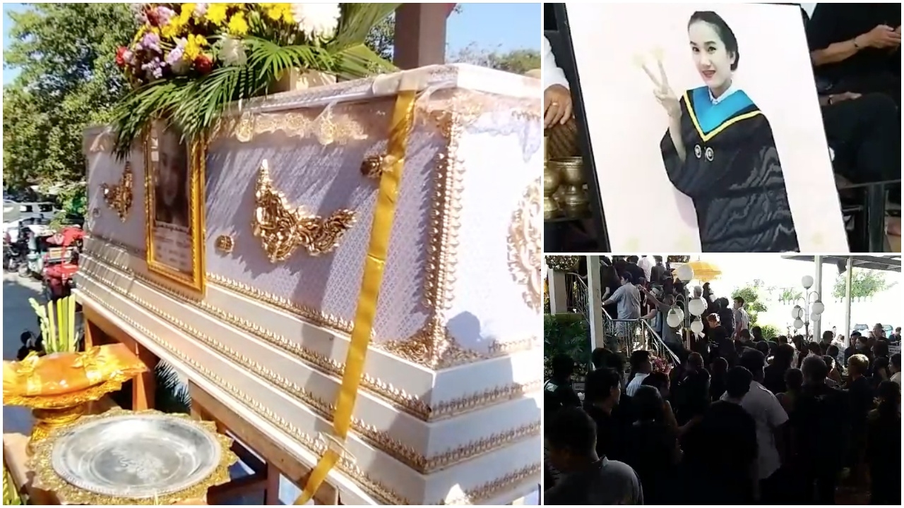 ทั้งนี้ ภายในงานศพวันนี้ มีผู้มาร่วมงานกว่า 300 คน แต่ละคนเต็มไปด้วยความโศกเศร้า โดยเฉพาะมารดาของผู้ตายที่ยังรับไม่ได้กับการจากไปของ นางสาวนันท์ชิยา.