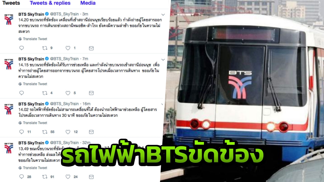 ขบวน รถไฟฟ้า BTS ขัดข้อง ได้รับการช่วยเหลือแล้ว กำลังนำขบวนรถเข้าสถานีอ่อนนุช เพื่อทำการถ่ายผู้โดยสารออกจากขบวนรถ โปรดเผื่อเวลาเดินทางด้วย