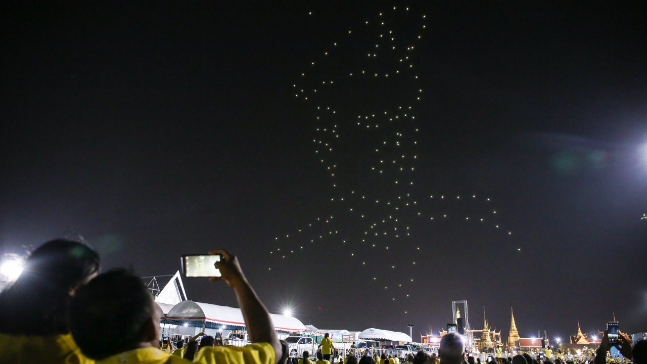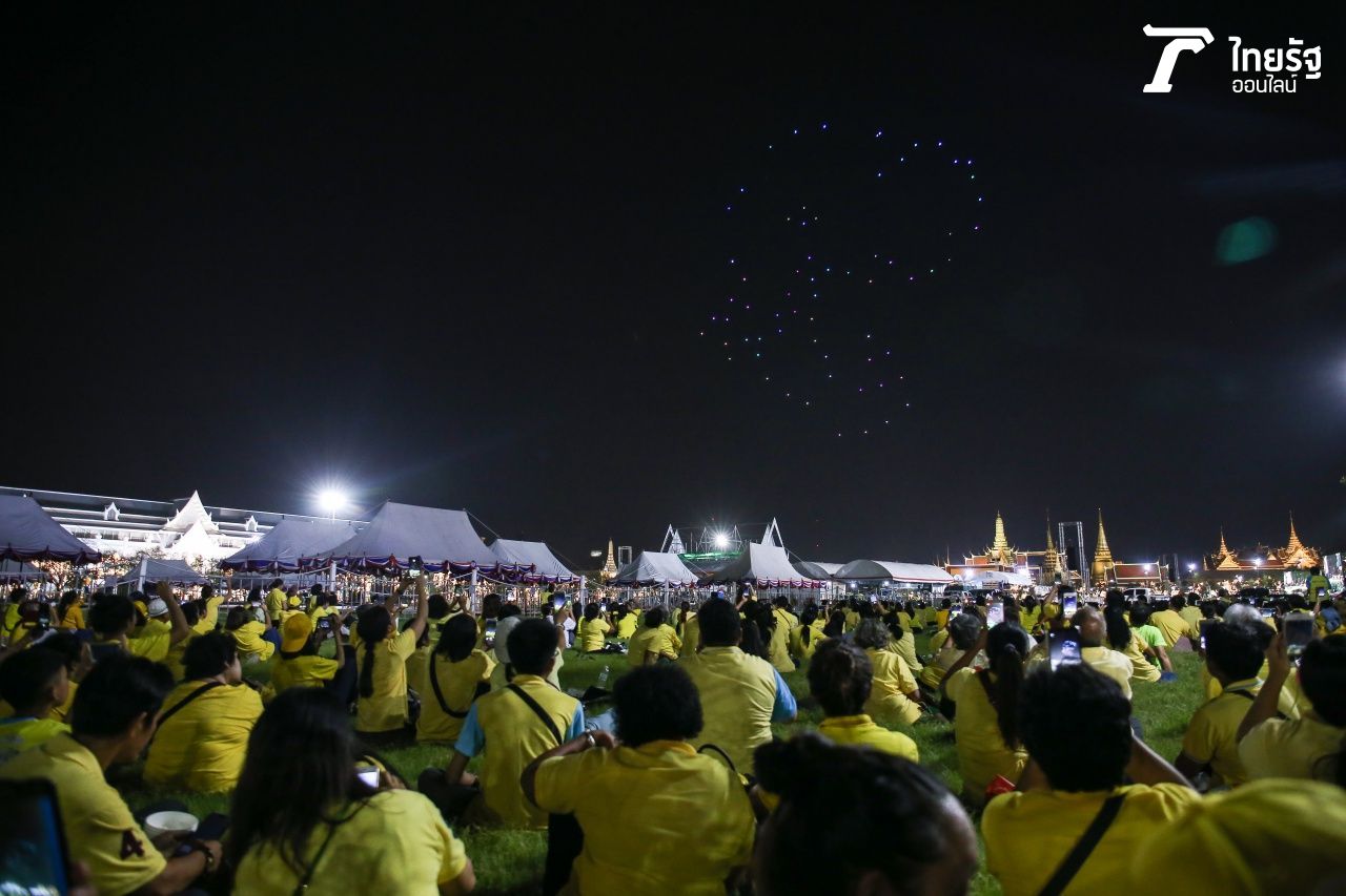 ยิ่งใหญ่อลังการวันมหามงคลพระราชพิธีบรมราชาภิเษก โดรนแปรอักษรถวายราชสดุดีจักรีวงศ์ ประกอบแสงสีเสียง บนท้องฟ้ากลางท้องสนามหลวง...