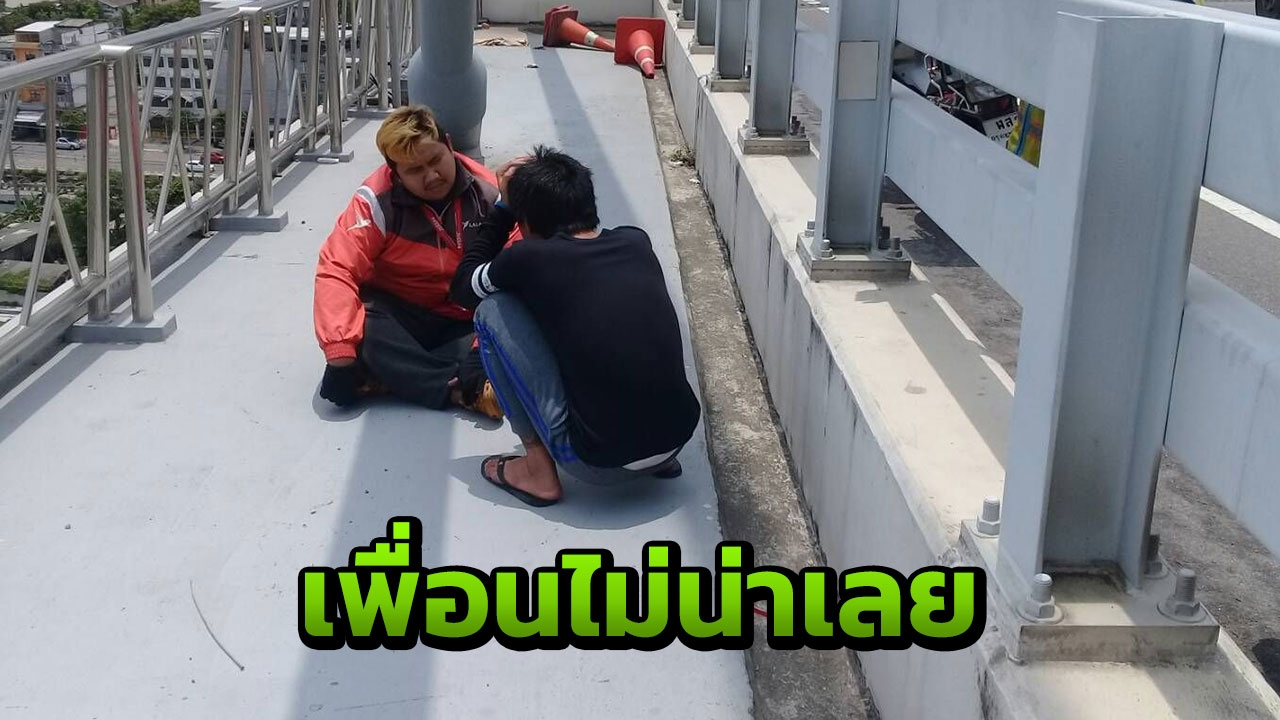จากการสอบถามนายอธิวัฒน์ ลอยเลื่อน อายุ 26 ปี เพื่อนที่เข้าช่วยเหลือผู้ตายในครั้งแรก เปิดเผยว่าช่วงก่อนเกิดเหตุ ประมาณ 11.00 น. ขณะตนกลับมาจากส่งของแล้วขึ้นสะพานดังกล่าว เห็นชายจอดรถ จยย.กลางสะพาน คล้ายพยายามจะกระโดดลงมา จึงรีบจอดรถเข้าช่วยเมื่อเข้าใกล้กลับกลายเป็นเพื่อนตนที่เป็นคนในชุมชนเหมือนกัน ตนจึงห้ามไว้ได้ทันแล้วนำตัวไปส่งบ้าน ก่อนผู้ตายจะย้อนกลับมาโดดอีกครั้งจนเป็นเหตุดังกล่าว ขณะเกลี้ยกล่อมครั้งแรกทราบว่ามีปัญหาเรื่องครอบครัว