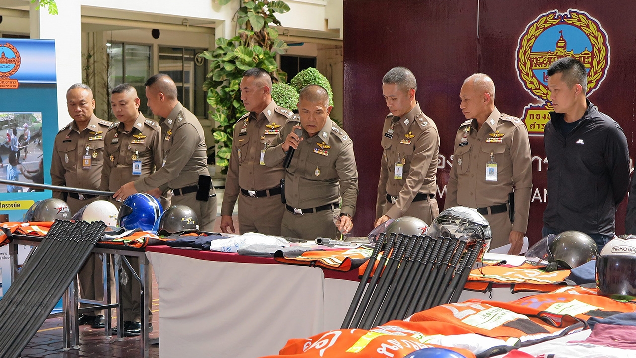 พล.ต.ท.สุทธิพงษ์ วงษ์ปิ่น ผบช.น. แถลงความคืบหน้าคดีวินรถ จยย.ตีกันที่ซอยอุดมสุข พื้นที่ สน.บางนา จับผู้ร่วมก่อเหตุได้แล้ว 43 คน พร้อมของกลางจำนวนมาก อยู่ระหว่างขยายผล เงินที่เรียกเก็บจากลูกวิน ปลายทางไปอยู่ในมือกลุ่มอิทธิพลใด.