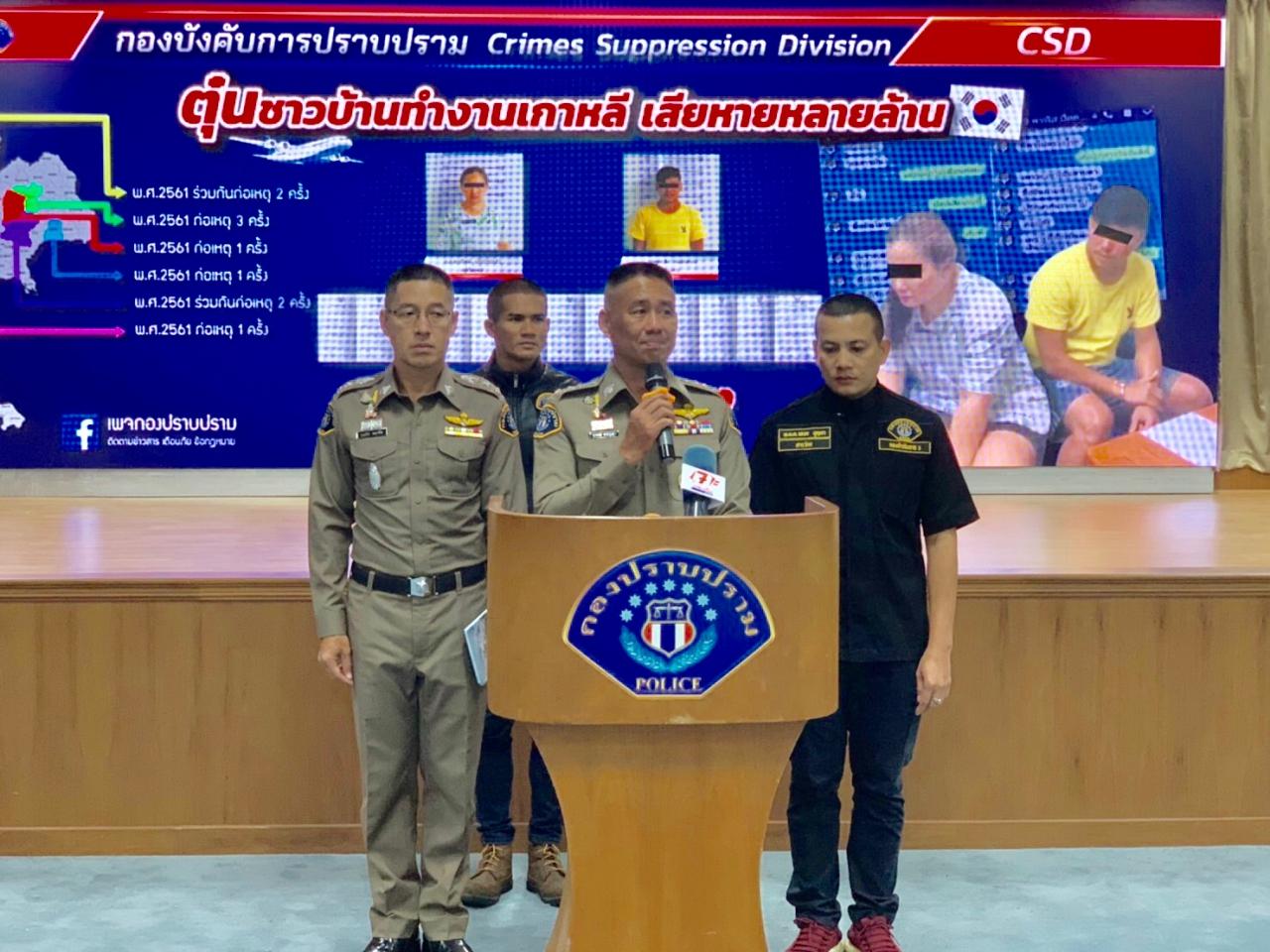 พ.ต.อ.บุญลือ เปิดเผยว่า ก่อนหน้านี้มีกลุ่มผู้เสียหายจาก จ.นครราชสีมา และจ.ชัยภูมิ จำนวนมากเข้าร้องทุกข์กับเจ้าหน้าที่จัดหางานจังหวัดนครราชสีมา หลังถูกหลอกให้ไปทำงานด้านเกษตรกรรมที่ประเทศเกาหลีใต้ ความเสียหายรวมกันหลายล้านบาท จากการสอบปากคำกลุ่มผู้เสียหายทราบว่า เมื่อประมาณ ปี 2560 ได้ไปรู้จักกับน.ส.พรทิพย์ และนายตะวัน สองสามีภรรยา อ้างว่า สามารถช่วยพาไปทำงานเกี่ยวกับการเกษตรที่ประเทศเกาหลีใต้ได้ โดยไม่ต้องผ่านขั้นตอนตามกฎหมายที่ยุ่งยาก และไม่ถูกส่งตัวกลับแน่นอน เนื่องจากมีความชำนาญ แต่ต้องมีค่าใช้จ่ายในการเดินทาง และค่าเอกสารคนละ 5-7 หมื่นบาท ถูกกว่าบริษัทจัดหางานที่อื่น
