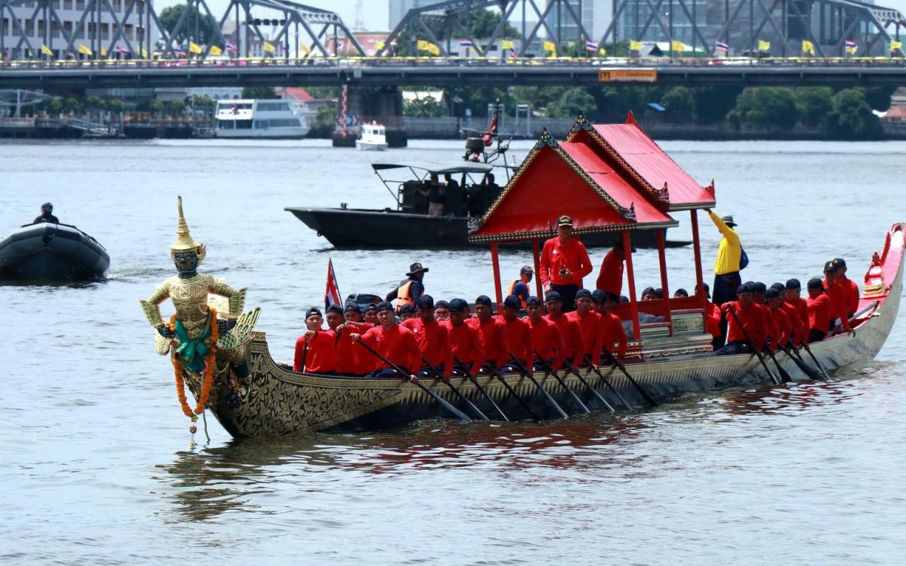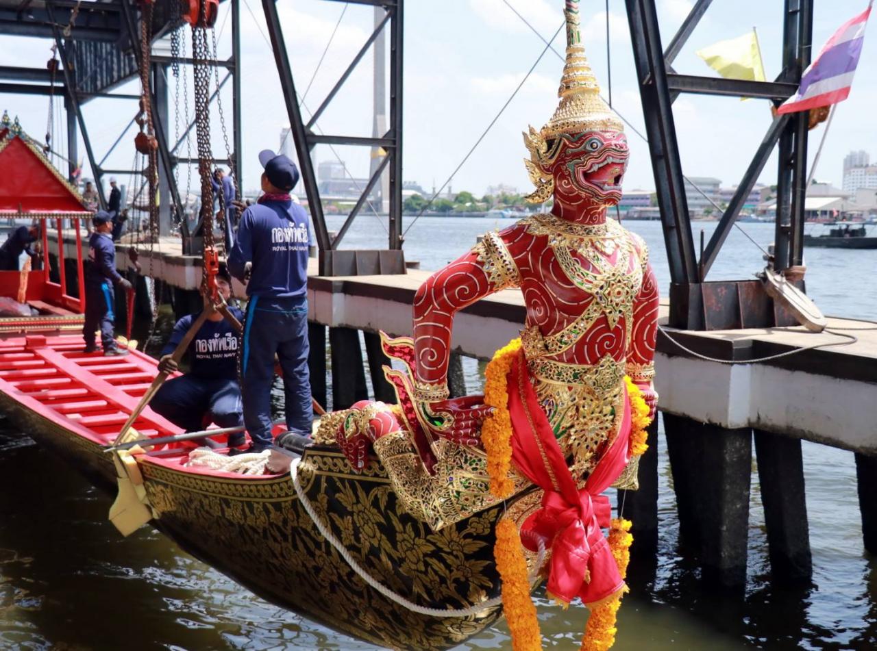 "กองทัพเรือ" เริ่มทยอยเคลื่อนย้ายเรือพระราชพิธีรูปสัตว์ลงน้ำ เพื่อเตรียมสำหรับการฝึกซ้อมเข้าร่วมในริ้วขบวนพยุหยาตราชลมารค ขณะที่บทเห่เรือในพระราชพิธีนี้ ได้รับพระบรมราชานุญาต ให้ใช้ 3 บท คือบทสรรเสริญพระบารมี บทชมเรือ และบทบุญกฐิน