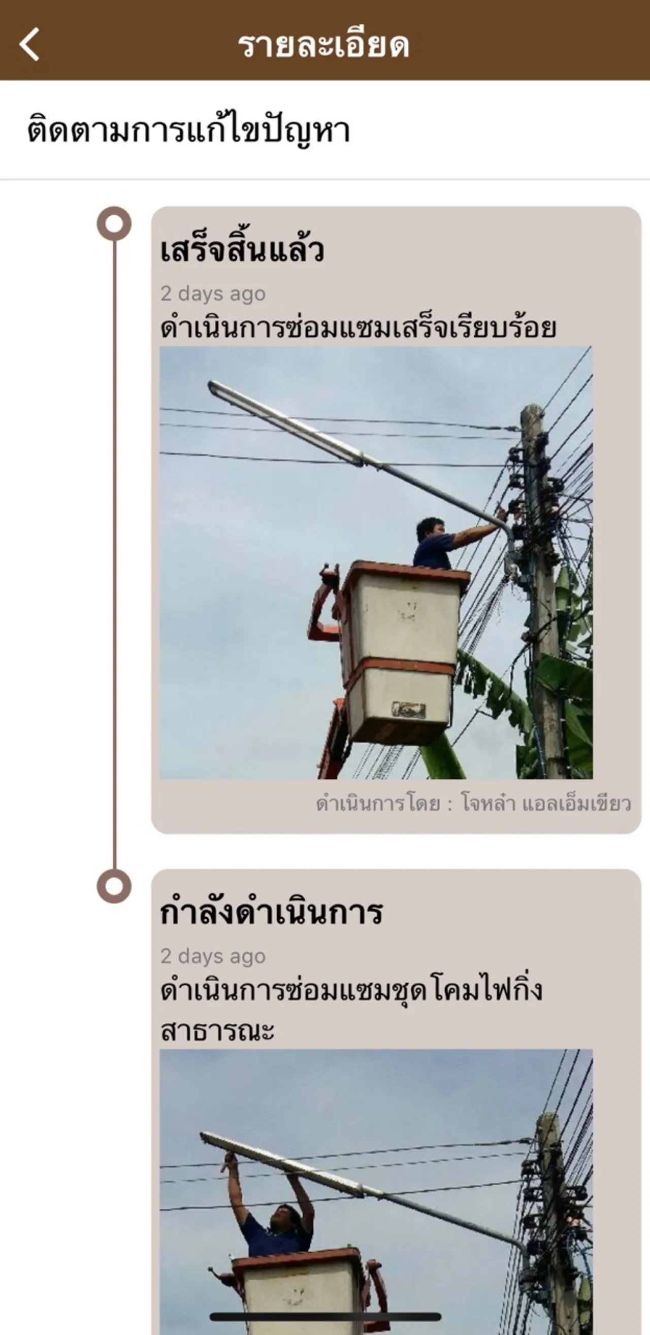 - ภายในแอปฯ มีระบบแจ้งเตือนสถานะการแก้ปัญหาถึงผู้รับผิดชอบ และผู้ติดตามแบบอัตโนมัติ โดยแบ่งเป็น 1.รอดำเนินการ 2.กำลังดำเนินการ และ 3.เสร็จสิ้น