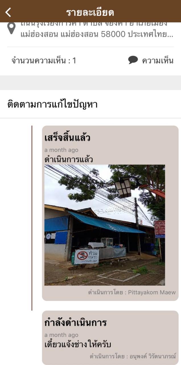 “โดยกระบวนการต่อมา หลังมีการแจ้งปัญหาไปแล้ว คือ หน่วยงานที่เกี่ยวข้องจะจัดส่งเจ้าหน้าที่เข้าไปแก้ไข แต่อุปสรรคของเจ้าหน้าที่ก็คือ ก่อนเดินทางไป พวกเขาไม่ได้เห็นภาพปัญหาที่แท้จริง และที่สำคัญที่สุด คือ แจ้งแล้ว แต่อาจไม่ได้รับการแก้ไข หรือแจ้งแล้ว แต่ไปแก้ไขผิดจุด โดยครั้งหนึ่งผมได้ลงพื้นที่ไปกับชุมชน ซึ่งได้รับแจ้งจากเจ้าหน้าที่ว่า มีชาวบ้านแจ้งว่า ไฟดับหน้าวัด แต่เจ้าหน้าที่ไปซ่อมแซมให้ช่วงกลางวัน จึงทำให้ซ่อมผิดหลอด”