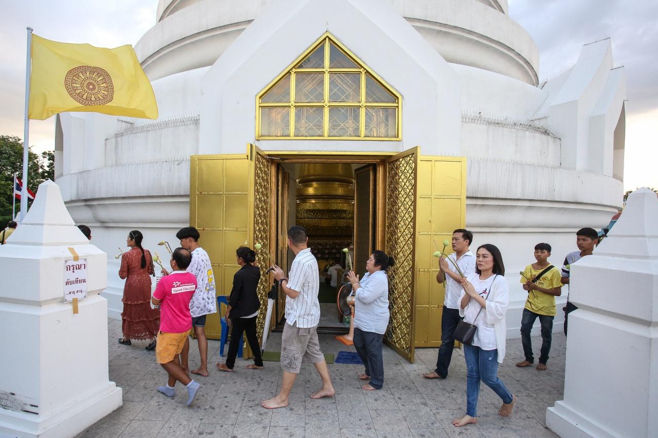 วันที่ 16 ก.ค.62 พุทธศาสนิกชนจำนวนมาก ร่วมพิธีเวียนเทียนรอบพระเจดีย์ศรีมหาธาตุ ภายในวัดพระศรีมหาธาตุบางเขน ตั้งแต่พระอาทิตย์ขึ้นจนกระทั่งดวงจันทร์เข้าแทนที่ เดินทางเข้ามาอย่างไม่ขาดสาย เนื่องในวันอาสาฬหบูชา เป็นวันที่พระพุทธเจ้าทรงแสดงธรรมแก่ปัญจวัคคีย์ทั้ง 5 เรียกว่า "ธัมมจักกัปปวัตนสูตร" หรือ พระสูตรแห่งการหมุนวงล้อธรรม