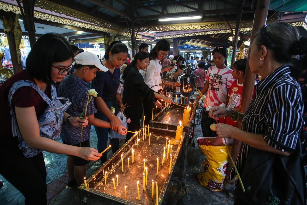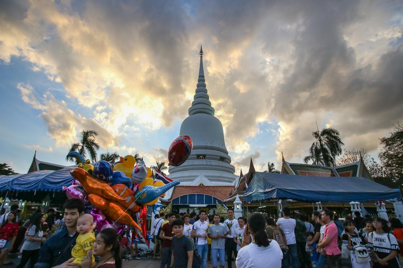 พุทธศาสนิกชนจำนวนมาก ร่วมพิธีเวียนเทียนรอบพระเจดีย์ศรีมหาธาตุ วัดพระศรีมหาธาตุบางเขน เนื่องในวันอาสาฬหบูชา