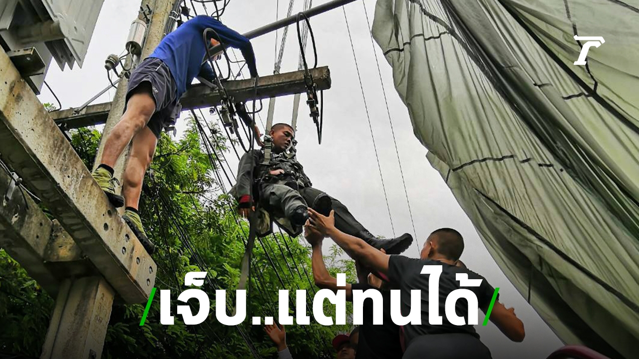 เมื่อเวลา 14.00 น. วันที่ 27 ก.ค.62 จากกรณีที่มีคลิปนาทีระทึก ตำรวจพลร่มค่ายนเรศวร ฝึกโดดร่มใหม่จากความสูง 800 ฟุต เจอกระแสลมแรง พัดตกใส่หม้อแปลงไฟฟ้าแรงสูง ถูกไฟฟ้าช็อตที่ท้องอาการสาหัส นำส่งรักษาตัวโรงพยาบาลตำรวจแล้วนั้น