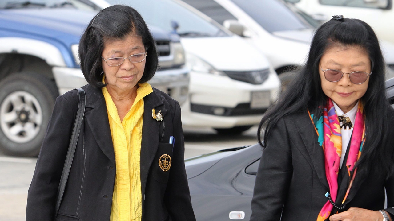 คุณหญิงจารุวรรณ เมณฑกา อายุ 73 ปี (ซ้าย) อดีตผู้ว่าการ สตง. เดินทางมาฟังคำพิพากษาฎีกา ศาลอาญาคดีทุจริตและประพฤติมิชอบกลาง หลังจากชั้นอุทธรณ์ตัดสินจำคุก 1 ปีไม่รอลงอาญา ปรากฏว่าฎีกาพิพากษาแก้เป็นให้จำคุก 9 เดือนปรับ 15,000 บาท โทษจำรอลงอาญา 2 ปี เพราะไม่เคยถูกลงโทษทางวินัยและทำความผิดครั้งแรก.