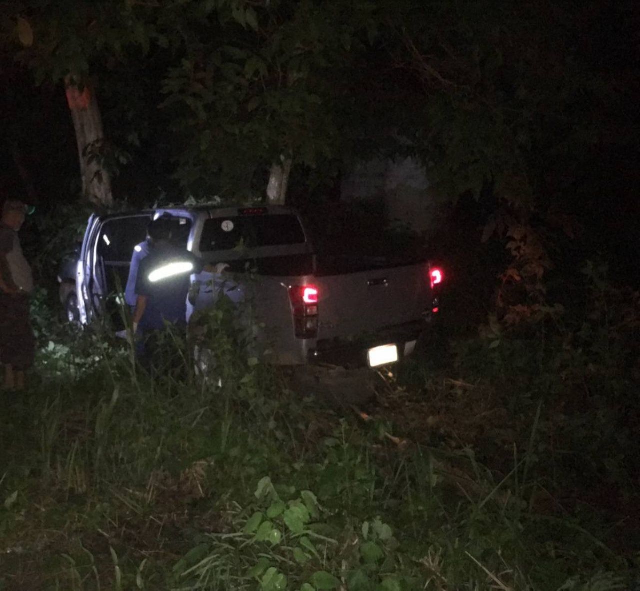 เมื่อเวลา 01.35 น. วันที่ 11 ก.ย.62 ร.ต.อ.อาคม วังคะฮาต รอง สว.(สอบสวน) สภ.นิคมคำสร้อย จ.มุกดาหาร ได้รับแจ้งเหตุรถยนต์ชนต้นไม้ริมทางคนขับอาการเบื้องต้นสาหัสมากที่ถนนลาดยางสายนิคมคำสร้อย-หนองสูง พื้นที่ หมู่ 5 ต.ร่มเกล้า อ.นิคมคำสร้อย จ.มุกดาหาร จึงรายงานให้ พ.ต.อ.ธนิต ดวงกลาง ผกก.สภ.นิคมคำสร้อย จ.มุกดาหาร ทราบ และนำกำลังพร้อมนายแพทย์รัชพล หาพันธ์ แพทย์เวรโรงพยาบาลนิคมคำสร้อย จ.มุกดาหาร รุดไปตรวจสอบที่เกิดเหตุพบกระบะ อีซูซุแบบ 4 ประตู สีเทา ทะเบียน กง 2025 มุกดาหาร ชนกับต้นไม้กระยาเลยที่ริมทางดังกล่าวจึงนำตัวคนขับทราบชื่อนายรัสเซีย รูปเรี่ยม อายุ 68 ปี ชาวบ้านหมู่ 4 ต.กกแดง อ.นิคมคำสร้อย จ.มุกดาหาร เป็น ส.อบจ.มุกดาหาร เขต อ.นิคมคำสร้อย จ.มุกดาหาร