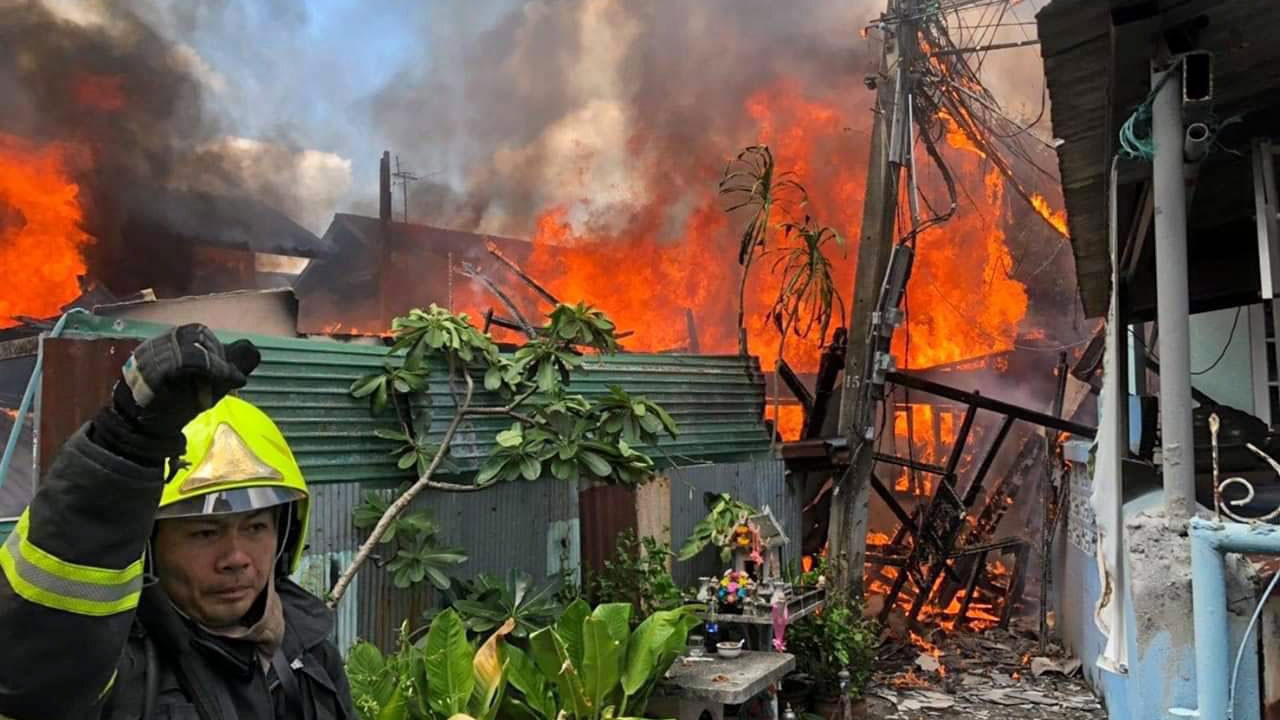 ไฟกำลังพวยพุ่งลุกไหม้บ้านในชุมชนต้นโพธิ์ ซอยวุฒากาศ 42 นักผจญเพลิงใช้เวลา 10 นาทีสกัดไว้ได้ แต่วอดไป 3 หลัง เหตุเกิดจาก 2 เด็กชายฝาแฝดวัย 8 ขวบ เล่นเตาแก๊สกันก่อนเกิดไฟลุก โชคดีหนีมาได้ ตำรวจอยู่ระหว่างให้สหวิชาชีพสอบปากคำ