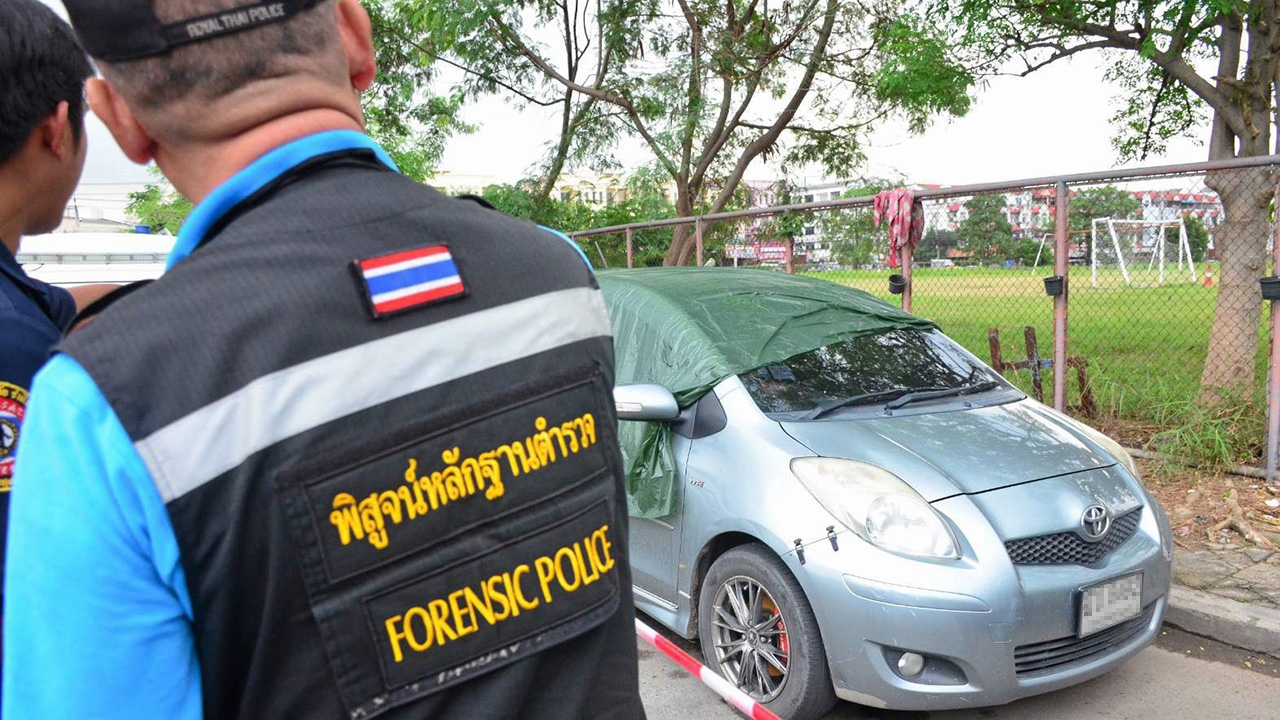 ที่เกิดเหตุพบรถยนต์โตโยต้า ยาริส สีบรอนซ์เงิน หมายเลขทะเบียน ฎบ 8492 กรุงเทพมหานคร จอดอยู่บนไหล่ทางถนนเคหะร่มเกล้าข้างสนามฟุตบอล ตรวจสอบภายในรถพบผู้เสียชีวิตเป็นผู้หญิงสภาพศพเริ่มขึ้นอืด นอนหงายบนเบาะที่นั่งคนขับปรับเอนเบาะไปด้านหลัง สวมเสื้อยืดสีเทา กางเกงขายาวสีน้ำตาล บริเวณที่วางเท้าด้านหน้าข้างคนขับพบเตาอั้งโร่มีถ่านและขี้เถ้าตกอยู่ลักษณะเผาไหม้จนมอดแล้ว และขวดสปายไวน์คูลเลอร์ ในตัวพบบัตรประชาชนระบุชื่อ น.ส.รมิดา ไกรนารถ อายุ 40 ปี อยู่เลขที่ 190 หมู่ 5 ต.ห้วยแร้ง อ.เมืองตราด เสียชีวิตมาแล้วประมาณ 2-3 วัน เจ้าหน้าที่เก็บลายนิ้วมือก่อนส่งศพพิสูจน์ที่สถาบันนิติเวชวิทยา รพ.ตำรวจ