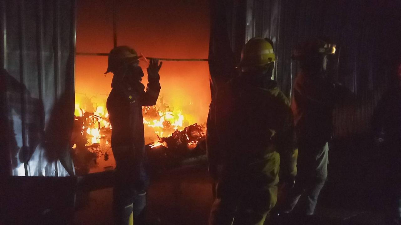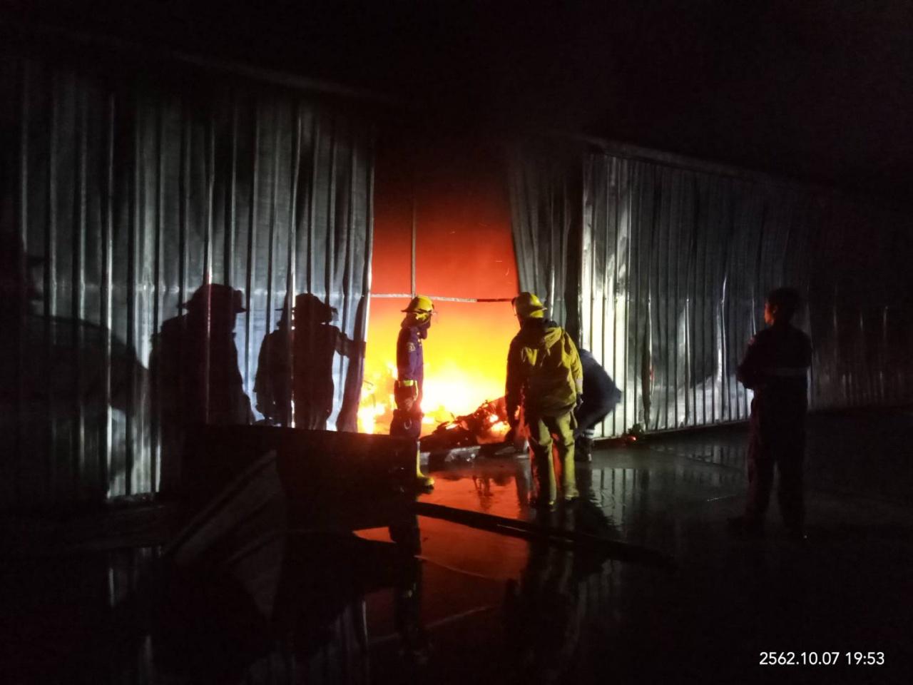 จุดเกิดเหตุเป็นโกดังสังกะสีชั้นเดียวของบริษัทดัง ซึ่งตั้งอยู่ริมถนน พบเพลิงกำลังลุกไหม้ภายในโกดัง เจ้าหน้าที่ใช้สายดับเพลิงฉีดเข้าไปใช้เวลา 1 ชั่วโมง จึงสามารถควบคุมเพลิงไว้ได้ พบว่าเพลิงได้ลุกไหม้เผา จยย.ของบริษัทกว่า 400 คัน ได้รับความเสียหาย แต่ไม่พบผู้บาดเจ็บหรือเสียชีวิตแต่อย่างใด