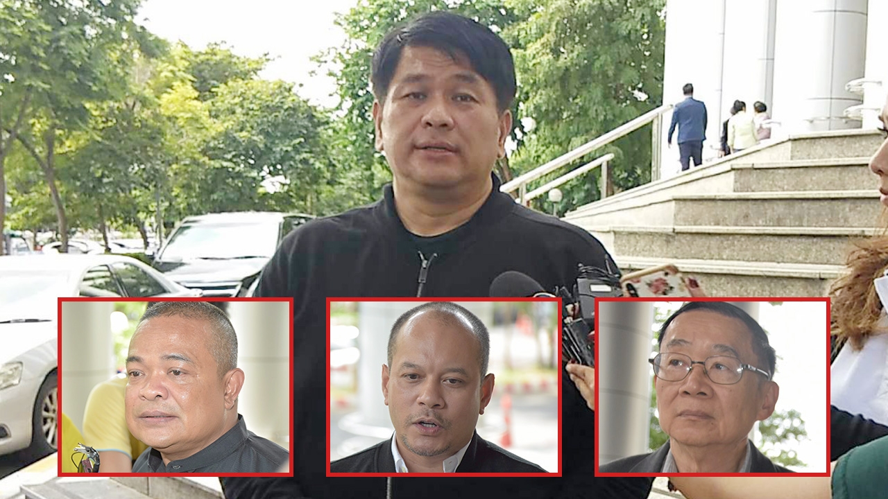 นายกัณพัศฐ์ สิงห์ทอง ทนายความนายจตุพร พรหมพันธุ์ นายณัฐวุฒิ ใสยเกื้อ และ นพ.เหวง โตจิราการ เผยมาสังเกตการณ์ หลังศาลฎีกาพิพากษาให้ทั้ง 3 คนชดใช้เจ้าของตึกย่านอนุสาวรีย์ชัยฯที่ถูกเผาเมื่อปี 53 รวม 21 ล้านบาท.