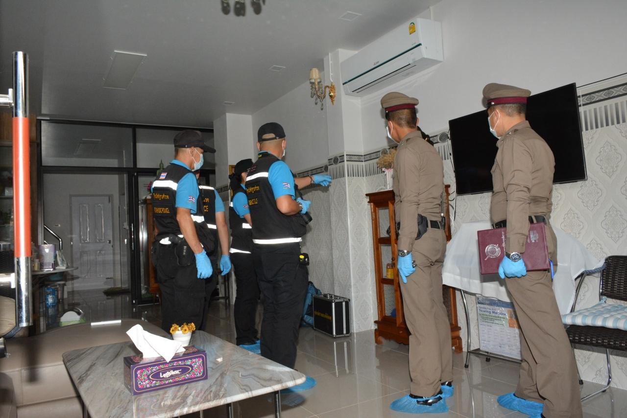 - เมื่อตำรวจตรวจสอบภายในบ้าน พบตู้เย็นขนาดใหญ่เสียบปลั๊กไฟไว้ ถูกวางนอนลงกับพื้นในห้องครัว มีผ้าห่มคลุมทับไว้ และด้านข้างตู้เย็นพบถุงปูนซีเมนต์ 2 ถุง ถูกแกะใช้แล้ว