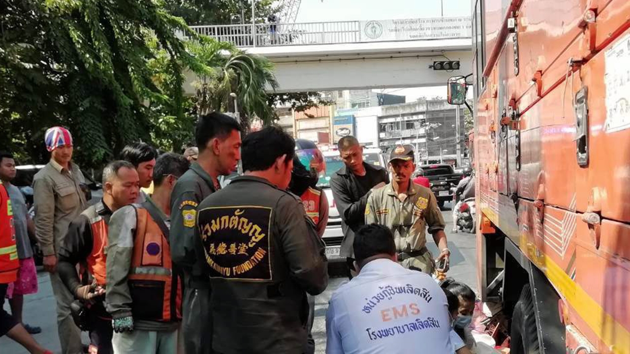 เจ้าหน้าที่กู้ภัยเข้าช่วยเหลือนายสุพจน์ แดงอาสา ชายพิการวัย 65 ปี หลังโยกจักรยาน 3 ล้อ ข้ามถนนบริเวณห้าแยก ณ ระนอง จังหวะกำลังข้ามสัญญาณไฟแดงเปลี่ยนเป็นไฟเขียว ถูกรถ 6 ล้อการไฟฟ้าฯ มองไม่เห็นวิ่งทับเสียชีวิต.