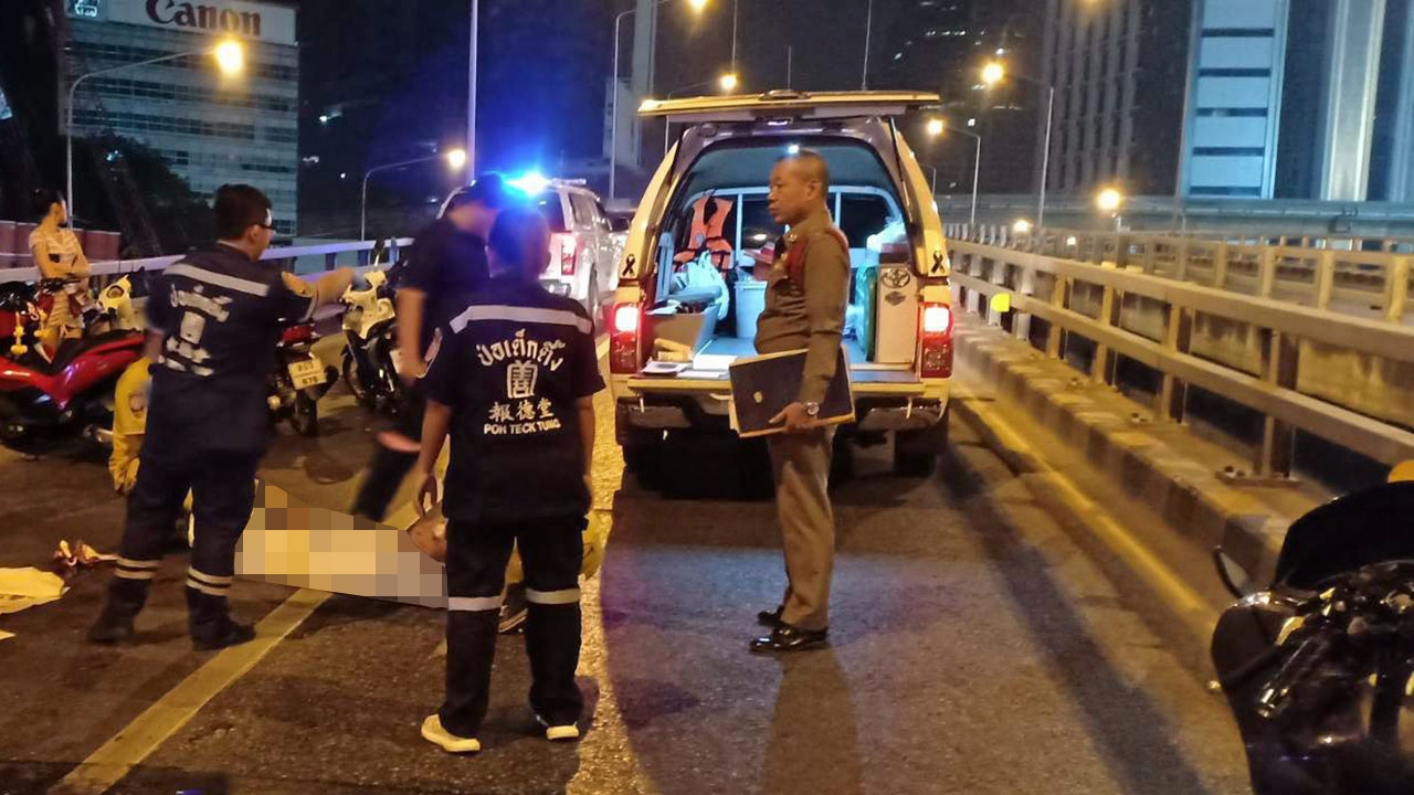 แว้นวัยโจ๋ซิ่งสยอง ดวลความเร็วกับเพื่อนรอบดึก รถ จยย.เสียหลักชนราวสะพานไทย-ญี่ปุ่น ร่างลอยละลิ่วกระแทกราวเหล็ก กะโหลกแตกมันสมองกระจายเต็มถนน แม่มาดูที่เกิดเหตุเห็นสภาพศพลูกถึงกับปล่อยโฮแทบทรุด เพื่อนร่วมก๊วน เผยซิ่งนรกกับเพื่อนจากหัวลำโพง-คลองเตยมาแล้ว 1 รอบ ขณะเกิดเหตุเป็นรอบ 2 แต่เกิดอุบัติเหตุก่อน