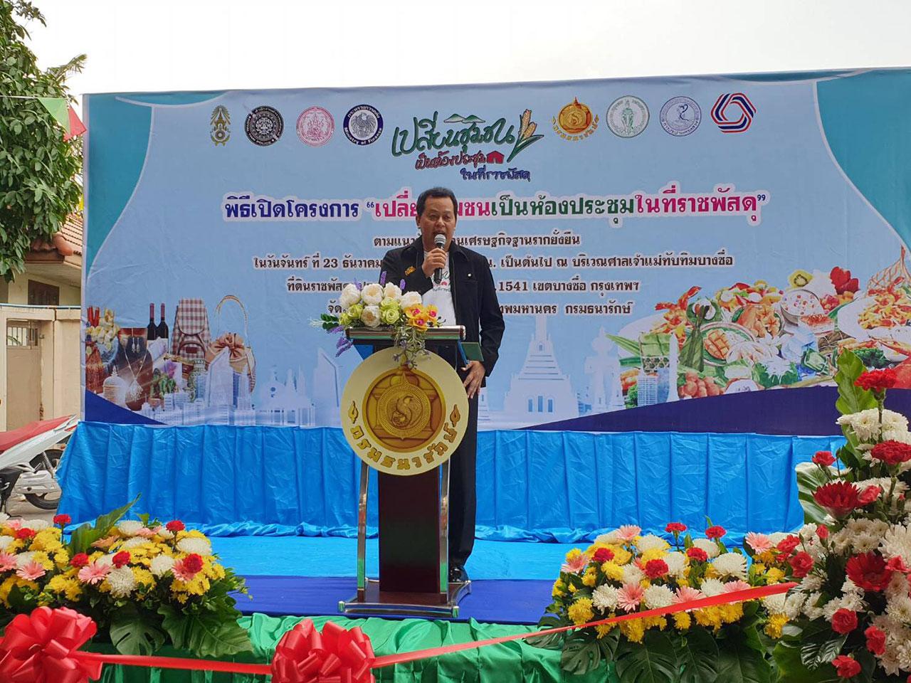 เมื่อวันที่ 23 ธ.ค.62 นายชื่นชอบ คงอุดม ผู้ช่วยรัฐมนตรีประจำกระทรวงการคลัง และ นายยุทธนา หยิมการุณ อธิบดีกรมธนารักษ์ ร่วมเป็นประธานขับเคลื่อนโครงการ "เปลี่ยนชุมชนเป็นห้องประชุม ในที่ราชพัสดุ" ตามแนวทางการขับเคลื่อนการพัฒนาเศรษฐกิจฐานรากอย่างยั่งยืน ซึ่งเป็นนโยบายของ นายอุตตม สาวนายน รัฐมนตรีว่าการกระทรวงการคลัง และนายสันติ พร้อมพัฒน์ รัฐมนตรีช่วยว่าการกระทรวงการคลัง ณ ที่ราชพัสดุแปลงหมายเลขทะเบียนที่ กท.1541 แขวงบางซื่อ เขตบางซื่อ กรุงเทพมหานคร
