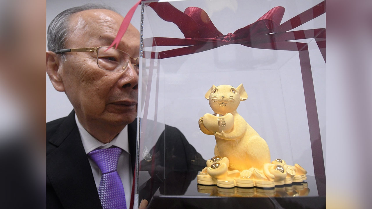 นายชาญวิทย์ หิรัญอัศว์ ประธานกรรมการโรงพยาบาลเทียนฟ้ามูลนิธิ โชว์หนูทองคำที่สั่งทำเป็นพิเศษมืออุ้มก้อนทองคำมีอักษรจีนคำว่า “ฮก” ที่จะทูลเกล้าฯถวาย กรมสมเด็จพระเทพฯ ที่เสด็จฯมาเป็นองค์ประธานเปิดงานเทศกาลตรุษจีนเยาวราช วันที่ 25 ม.ค.